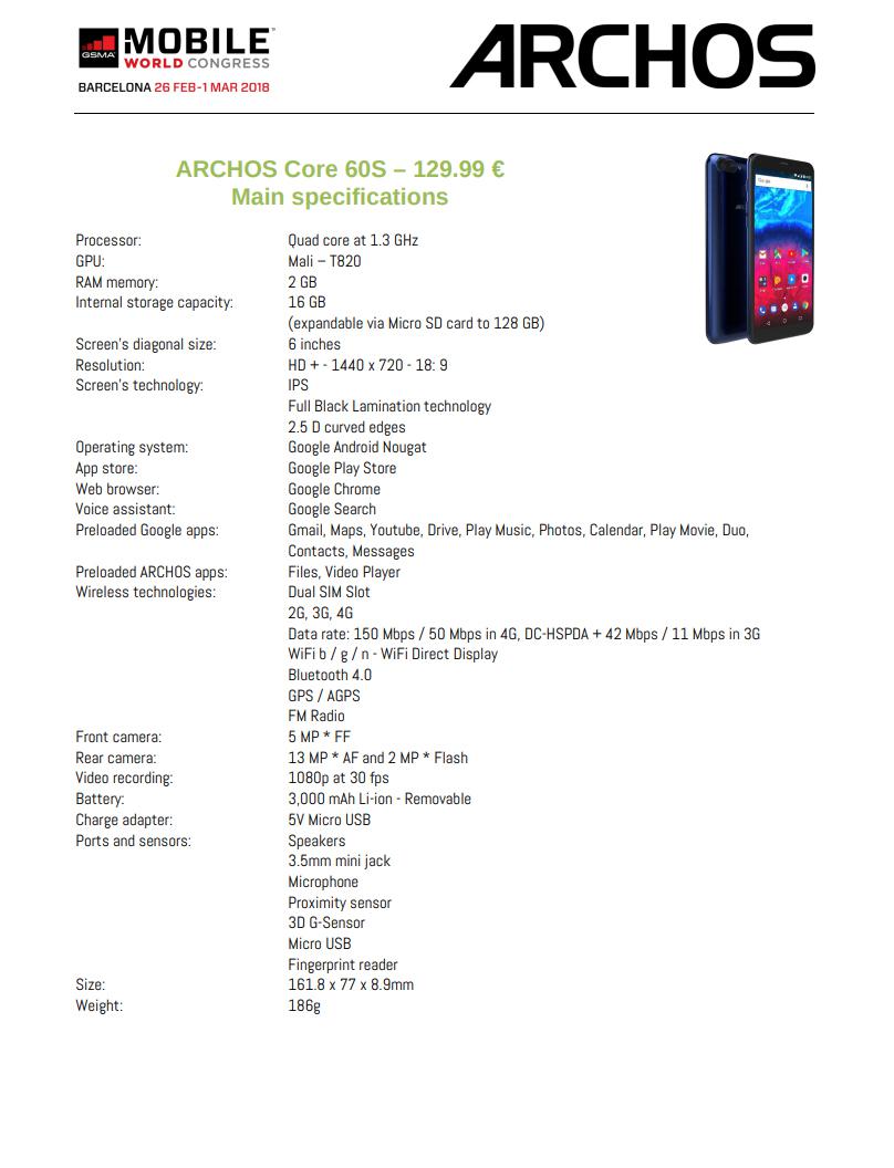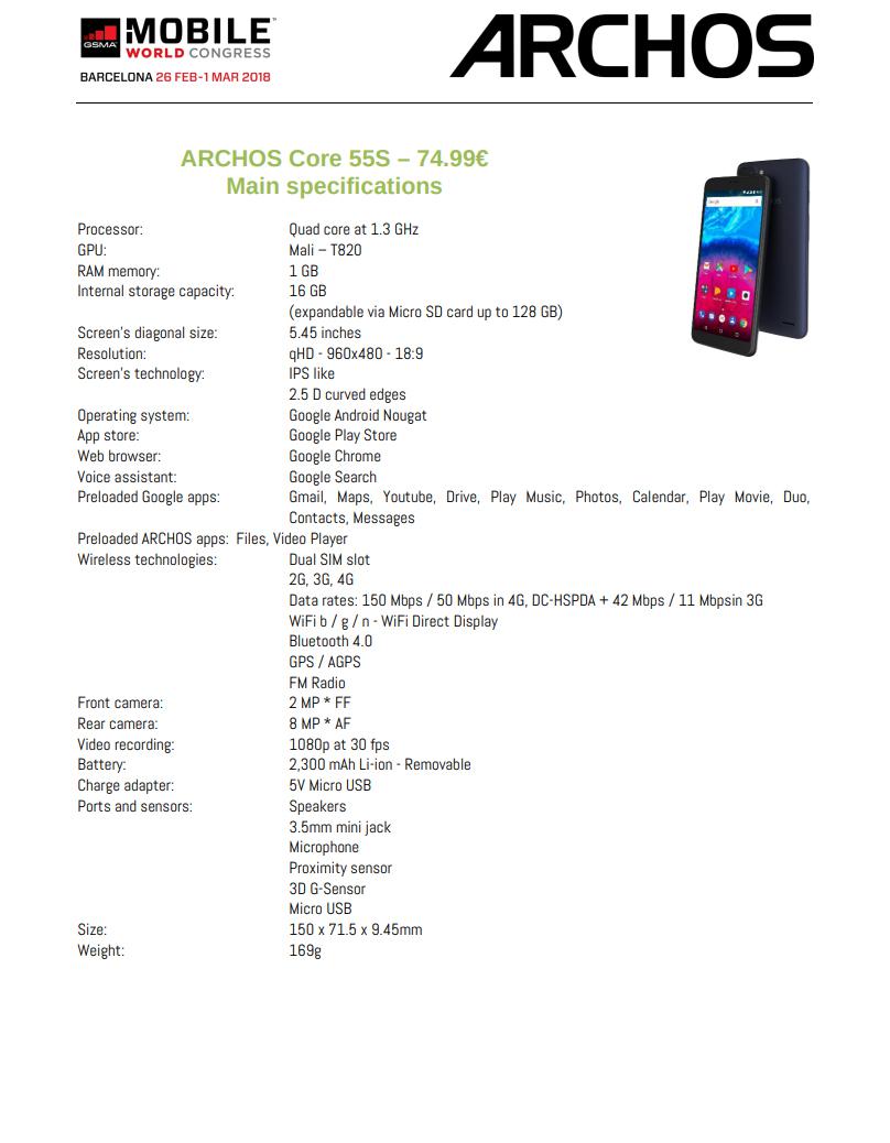 MWC 2018. La firma ARCHOS ha anunciado los Core 55S, 57S y 60S en el conocido evento que se celebra en Barcelona, tres terminales que confirman su apuesta por los smartphones económicos.