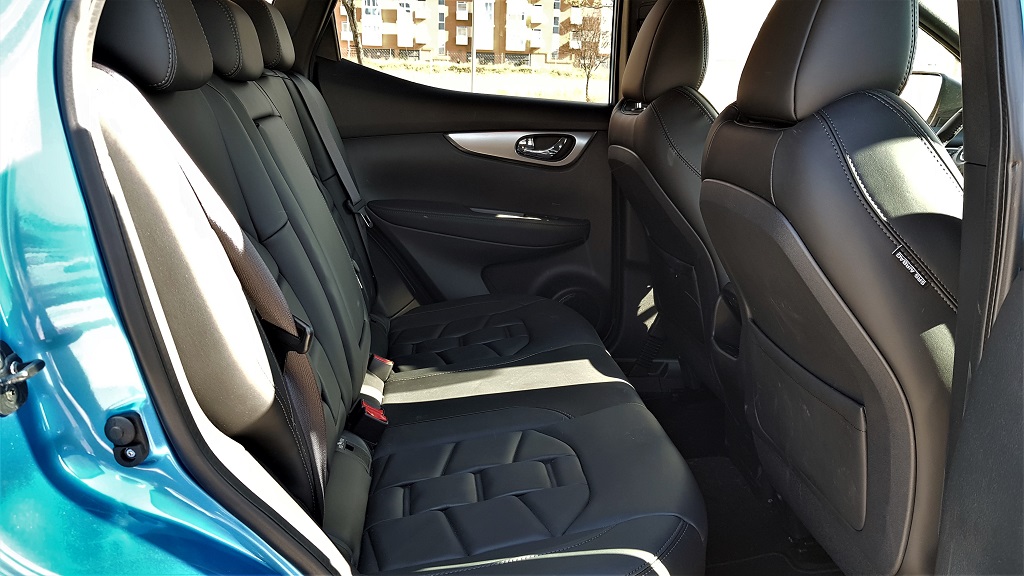 Estos sistemas han evolucionado con respecto a versiones anteriores, por ejemplo el freno de emergencia detecta peatones además de vehículos lo que lo hace aún más útil en ciudad. Si seguimos con el viaje por el interior del Qashqai pasamos a las plazas traseras, también cómodas por amplitud de piernas aunque no tanto en altura y en anchura. Pueden viajar tres personas en la parte de atrás aunque por la presencia del reposabrazos escamoteable la que ocupe la parte central lo hará un poco más incómoda.