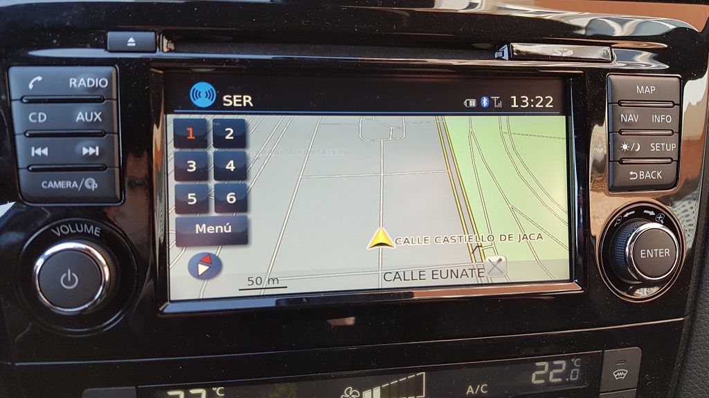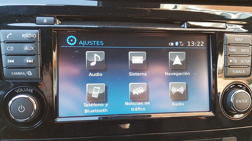 En la parte central del salpicadero encontramos la pantalla de control del sistema multimedia y de información, de siete pulgadas, que en nuestro caso controla el sistema de sonido Bose de siete altavoces. El display no se encuentra en la parte alta del salpicadero porque están las boquetas de aireación por lo que la posición no es la ideal. El interfaz se nos hace algo anticuado por el diseño de ciertos iconos y las fuentes de algunos elementos como los botones con números para la marcación pero por lo demás el sistema multimedia funciona bien.