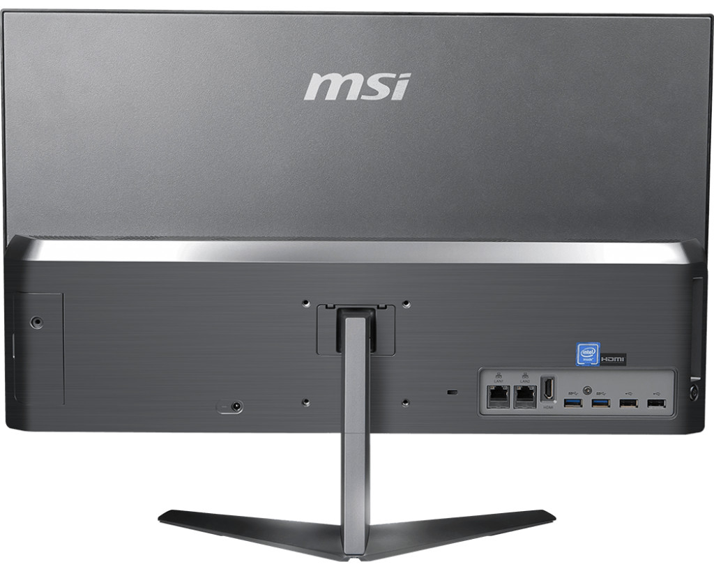 Como podemos ver en las imágenes los componentes que dan vida al PRO 24X se integran en la parte trasera (zona inferior) de la pantalla. MSI ha confirmado que la configuración base integra un procesador Intel Celeron 3865U de doble núcleo, pero es posible montar hasta un Core i5 7200U, que dispone de dos núcleos y cuatro hilos.