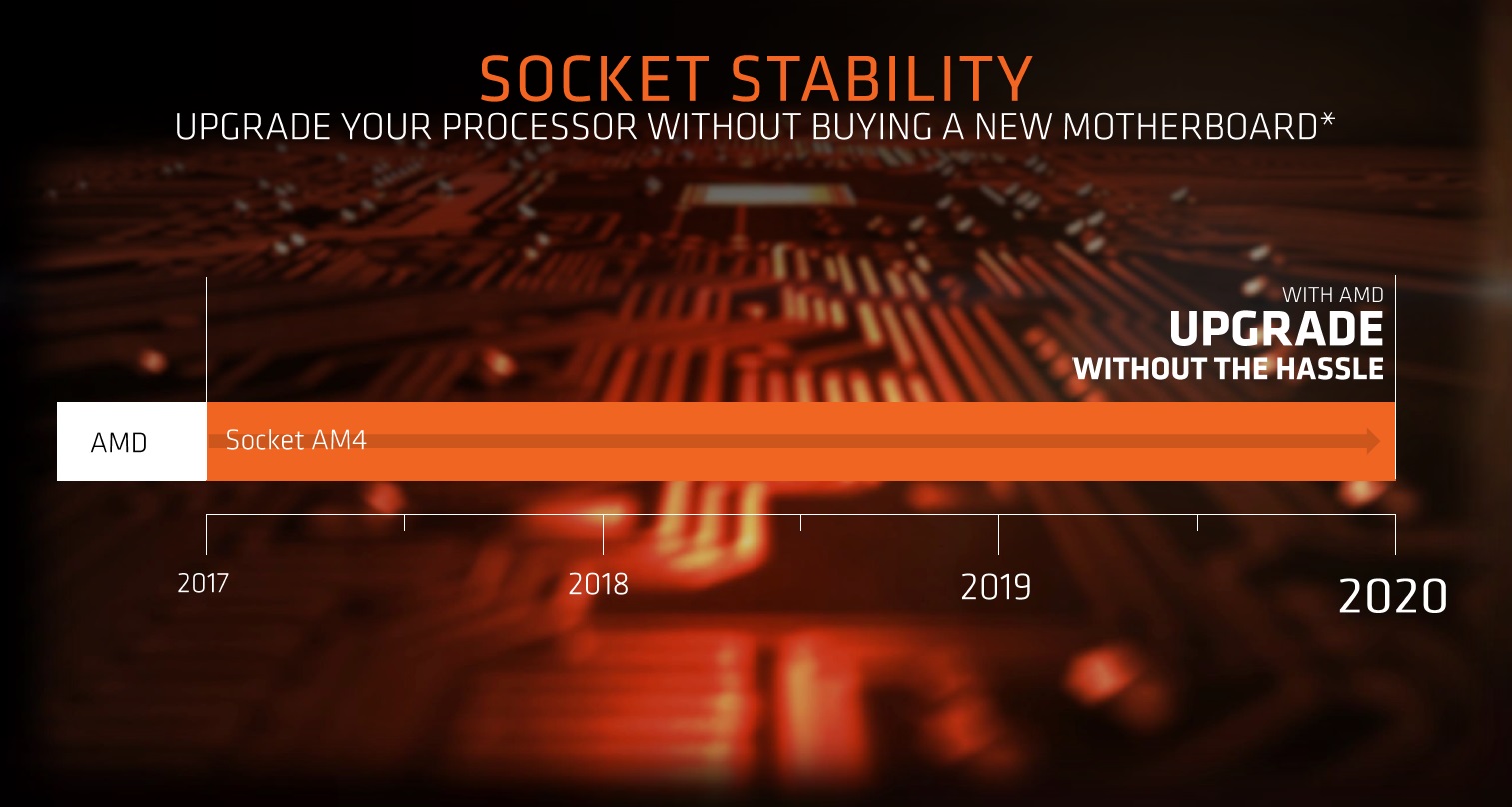 La estrategia de AMD con sus procesadores Ryzen y con el socket AM4 ha sido muy clara desde el principio, ofrecer un alto grado de soporte y mantenerlo como su única plataforma de consumo general hasta el año 2020. Esto quiere decir que las placas que utilizan dicho socket podrán utilizar las próximas generaciones de procesadores hasta ese año, aunque para mantener una vida útil tan larga será necesario realizar actualizaciones de BIOS que añadan los cambios necesarios para utilizar las nuevas CPUs que vaya lanzando AMD.