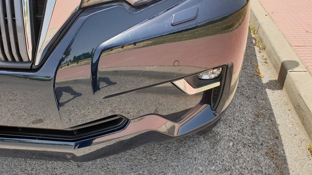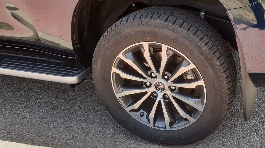Pero a pesar de esa evolución a un modelo más “burgués” este Land Cruiser que hemos probado mantiene intacto su espíritu todoterreno y su planta imponente. Toyota ha renovado recientemente, faros muy elevados y de diseño moderno y un perfil poco aerodinámico pero que transmite robustez y pocos indicios de querer apuntar a un diseño más urbano como el de la competencia. Al contrario, muchos detalles de todo terreno clásico como unas generosas taloneras, barras en el techo y en la parte trasera el clásico portón de apertura lateral y la rueda de repuesto colgando de la parte inferior trasera del coche.