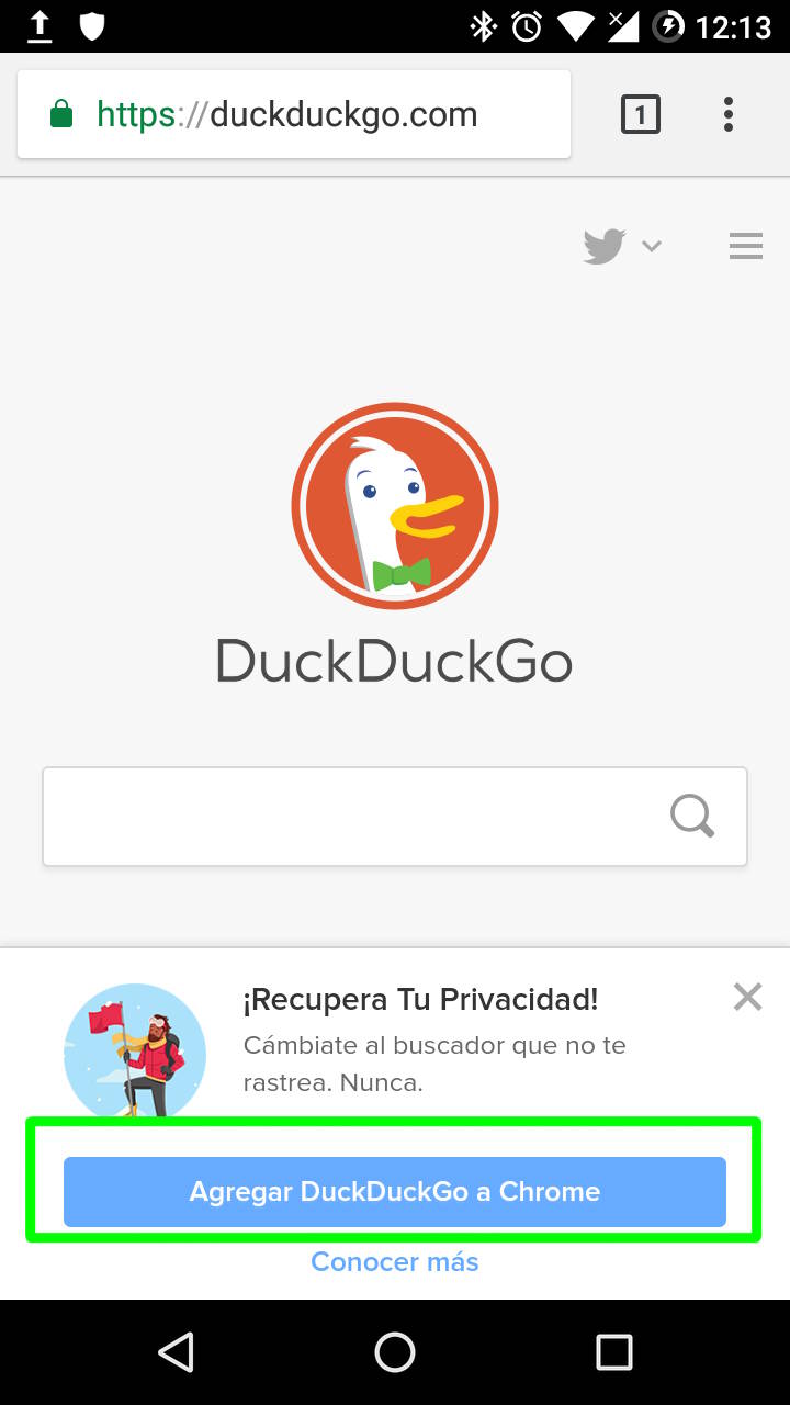 Además de esto, se puede establecer DuckDuckGo como buscador por defecto para tener uno que respete en lo máximo posible la privacidad del usuario. Para hacer eso en Chrome para Android hay que dirigirse primero al sitio web de DuckDuckGo, pulsar sobre sobre el botón de añadirlo al navegador que aparece en la parte inferior y luego marcarlo en la configuración de “Motor de búsqueda”.
