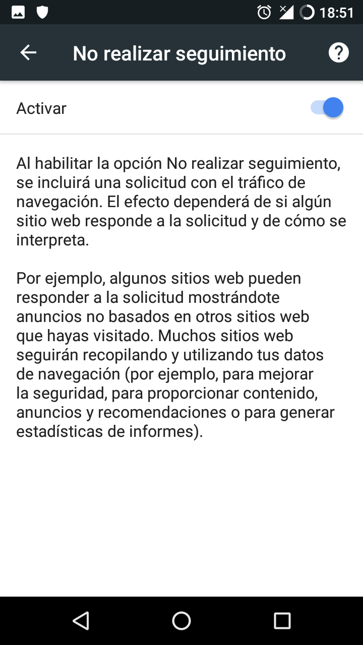 Después hay que buscar la sección “No realizar seguimiento” y una vez dentro de esta Activar la característica.