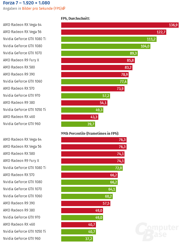 Esto se ha dejado notar en algunos títulos que han sido debidamente desarrollados bajo DirectX 12 o Vulkan. Por ejemplo, en Forza Motorsport 7 una Radeon RX Vega 56 era capaz de superar a una GTX 1080 TI en 1080p y en 1440p una Radeon RX Vega 64 también ofrecía un rendimiento superior a la GTX 1080 TI. En 2160p la solución de NVIDIA se imponía, pero la diferencia era muy pequeña.