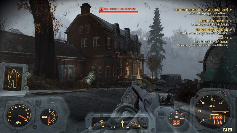 Se mantiene la posibilidad de alternar entre la perspectiva en primera y tercera persona, y también el VATS y los atributos clásicos, así como las habilidades (“perks”), pero con algunos cambios que han sido objeto de una gran polémica. Disparar fuera del VATS es muy sencillo, lo que significa que tenemos un abandono del tinte rolero que vimos en Fallout 3 y que quedó diluido en Fallout 4. Esto quiere decir que Fallout 76 para PC apuesta por un enfoque tipo shooter clásico a la hora de disparar, cosa que me ha gustado, francamente.