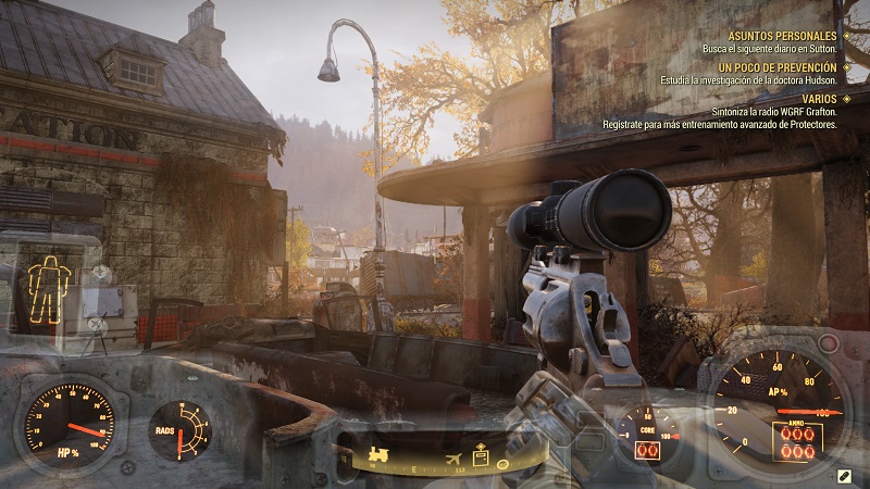 Por suerte esas carencias a nivel técnico se suplen con un excelente diseño artístico. Fallout 76 mantiene toda la esencia de la franquicia y pone a nuestro alcance todo yermo que explorar y saquear. Cada lugar tiene su propia personalidad y sus propias historias, y estas nos son contadas de formas muy diversas: a través de holocintas, de ordenadores, de notas escritas y también a través de los propios escenarios.