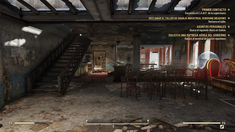 Esa es precisamente una de las cosas que más me ha gustado de la saga Fallout, su capacidad para contar historias a través de los escenarios y de los elementos que encontramos en los mismos. La ausencia casi total de NPCs se deja notar, pero no llega a ser algo tan grave como algunos se empeñan en hacernos creer, ya que esa carencia se suple de sobra a través de todos los elementos que hemos citado en el párrafo anterior.