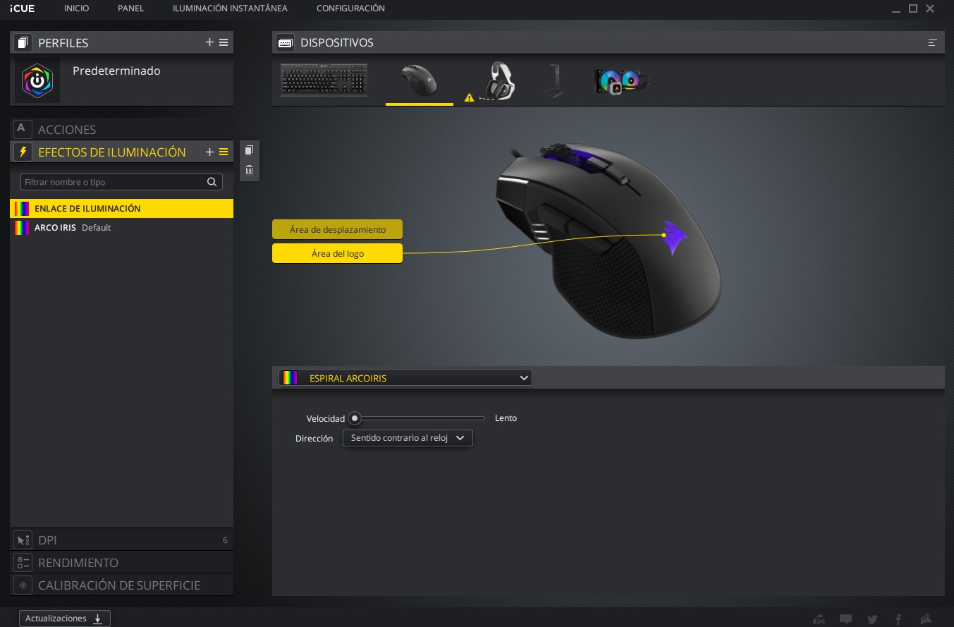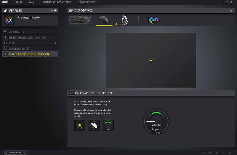 La configuración e instalación del Corsair IRONCLAW RGB es muy sencilla. Basta con conectar el cable USB y listo, aunque para aprovechar todas sus posibilidades debemos tener instalado el software iCUE de Corsair, donde podremos personalizar acciones y crear macros, ajustar la iluminación LED RGB, ajustar el rendimiento y calibrarlo en función de la superficie en la que vayamos a utilizarlo.