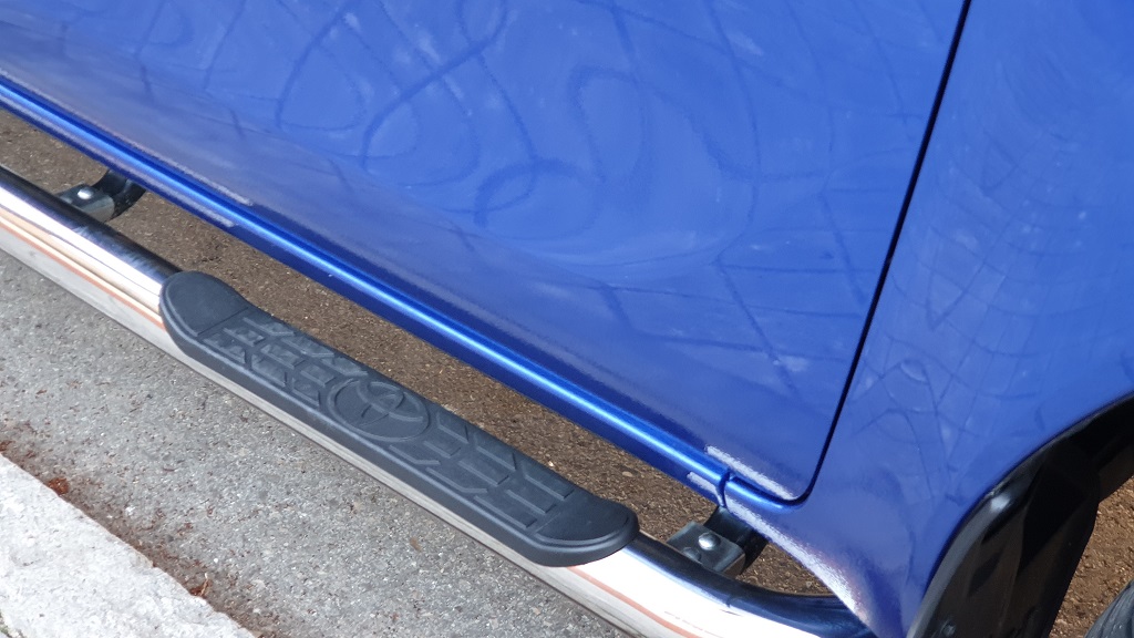 En un coche con esta altura no pueden faltar unas estriberas laterales de metal con recubrimiento en plástico en las zonas de acceso al interior del coche para facilitar la subida de los pasajeros. En la parte trasera la caja de carga viene rematada por dos grupos ópticos también muy grandes y protegidas por un gran paragolpes en color metálico interrumpido en el centro por otra estribera de plástico que facilita el que podamos acceder al contenido de la caja y que se aprovecha para colocar la matrícula.
