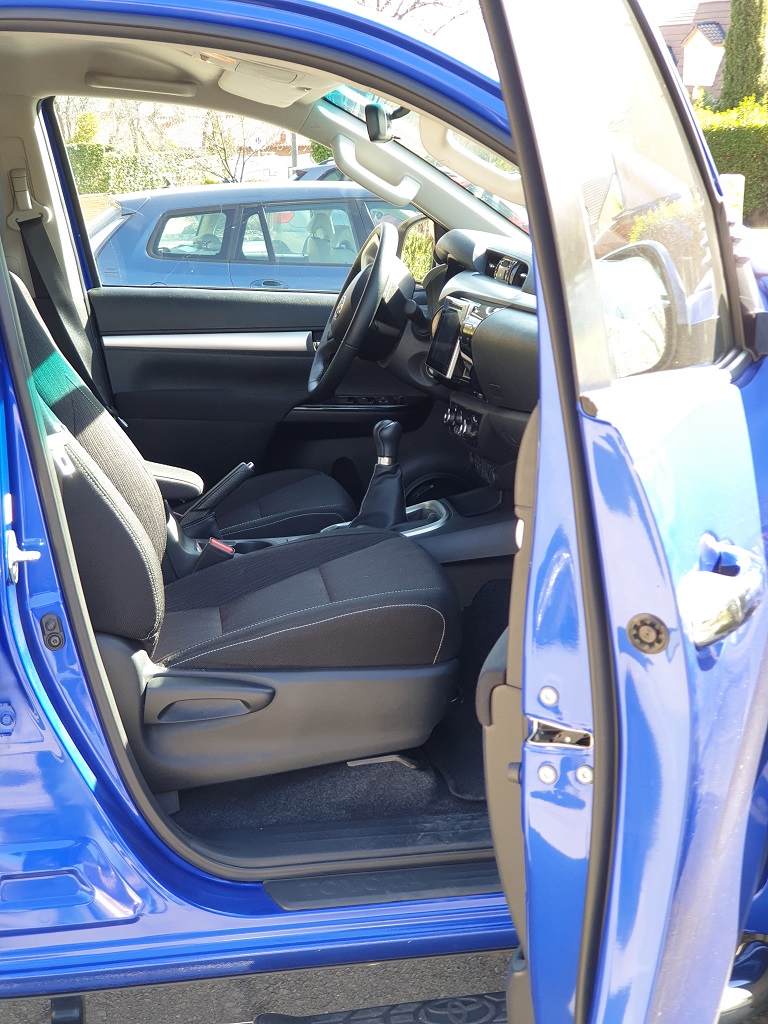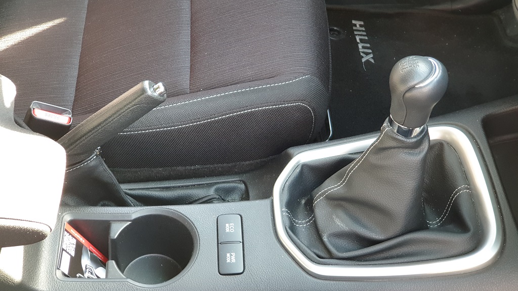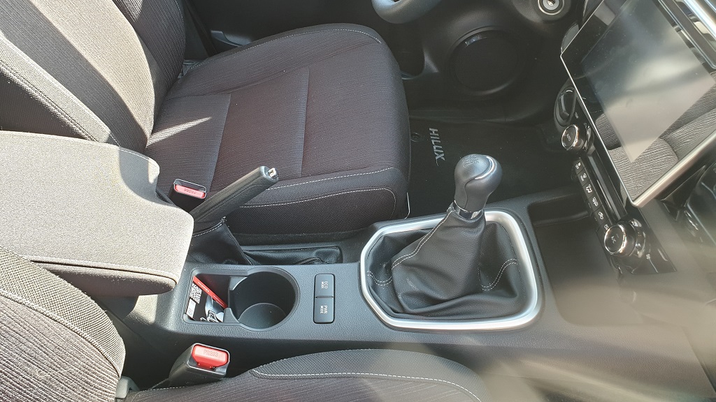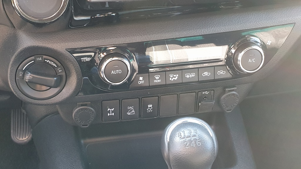 El interior del Hilux es cierto que puede responder al adjetivo espartano ya que está diseñado para soportar el trajín de personas que no vienen precisamente de una noche en la ópera sino que pueden traer consigo no solamente tierra y barro sino que seguramente necesiten dejar herramientas y otros materiales en el interior de la cabina. Eso se puede ver en la presencia de plásticos duros en distintas partes del interior del coche y otros detalles como la presencia de robustas barras de agarre para poder sujetarse en caso de baches.