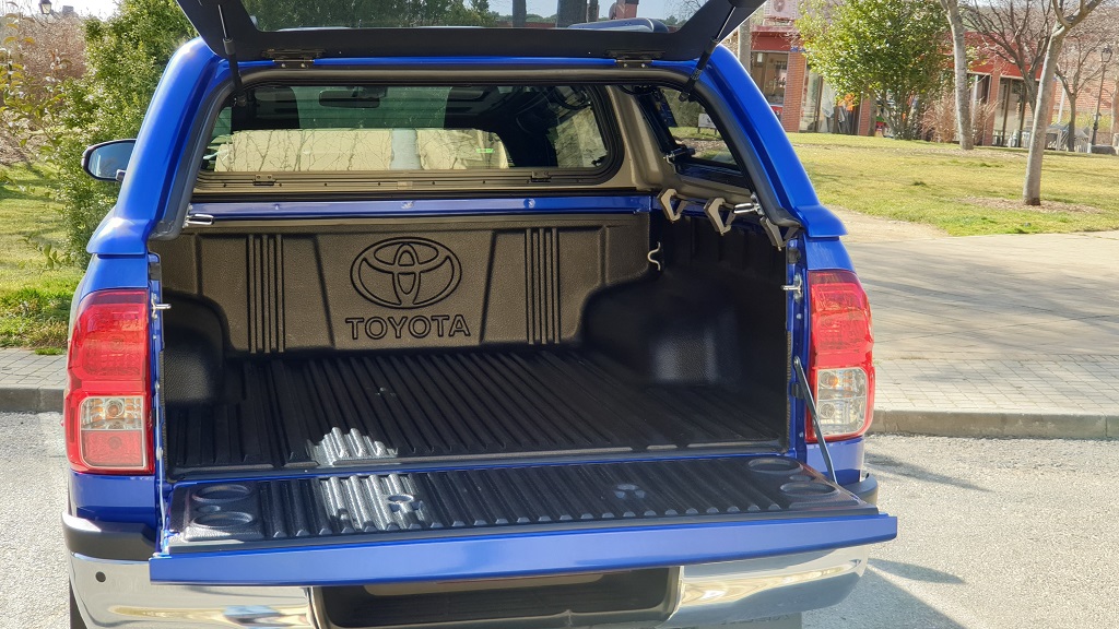 El hard top proporcionado por Toyota para este modelo permite que el Hilux tenga un aspecto menos espartano además de poder utilizarse para cargar objetos para los que no sea conveniente el contacto con la intemperie o que les llueva. Eso sí, el no tener comunicación con la cabina no podremos acceder al contenido de la misma si no paramos el vehículo.