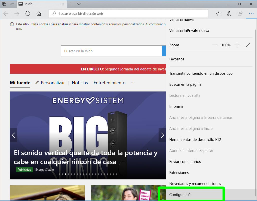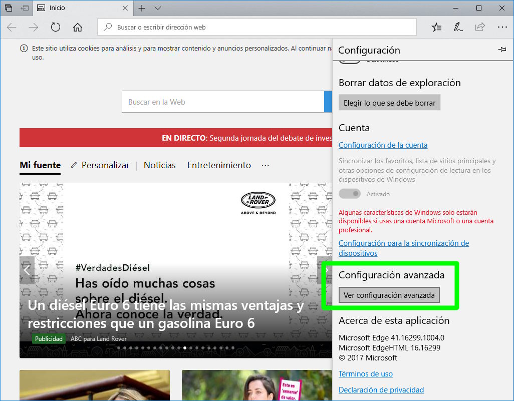El Microsoft Edge original tiene los días contados, sin embargo, eso no quiere decir que no se pueda seguir utilizando. Para bloquear las cookies de terceros hay que dirigirse a la Configuración de la aplicación y luego a “Configuración avanzada (Ver configuración avanzada)”.