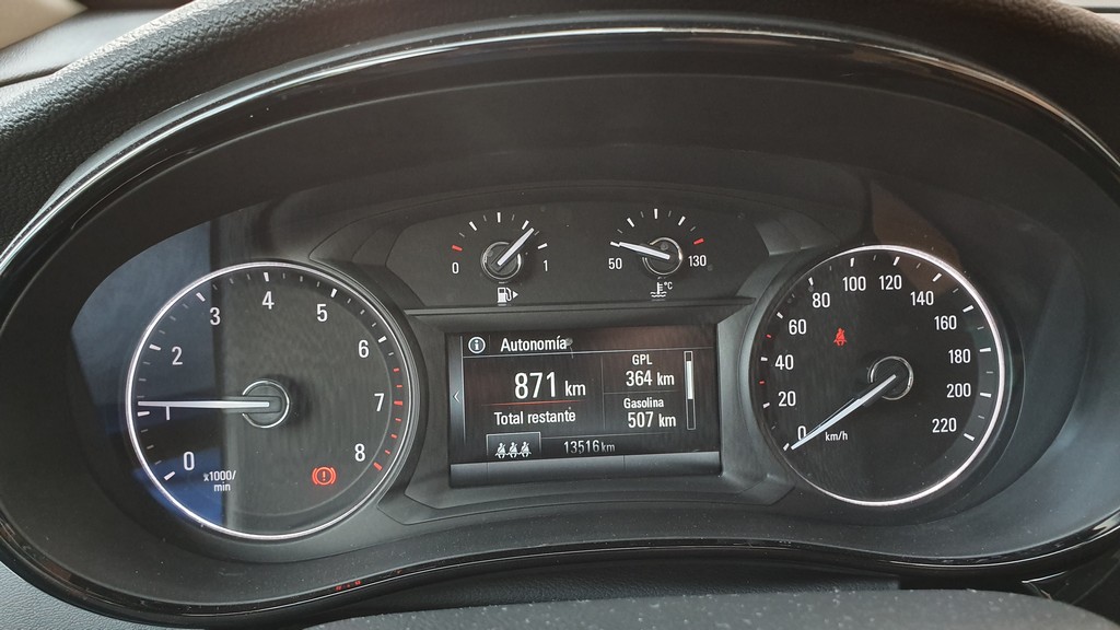 La autonomía total si sumamos la del depósito de gasolina de 53 litros y los mencionados 19 kilos del de GLP es evidentemente mayor que el de un Mokka X de gasolina y puede rondar los 900 kilómetros si no exigimos demasiado del coche. En modo exclusivamente GLP la autonomía no supera los 240 kilómetros (el coche en eso es muy optimista).