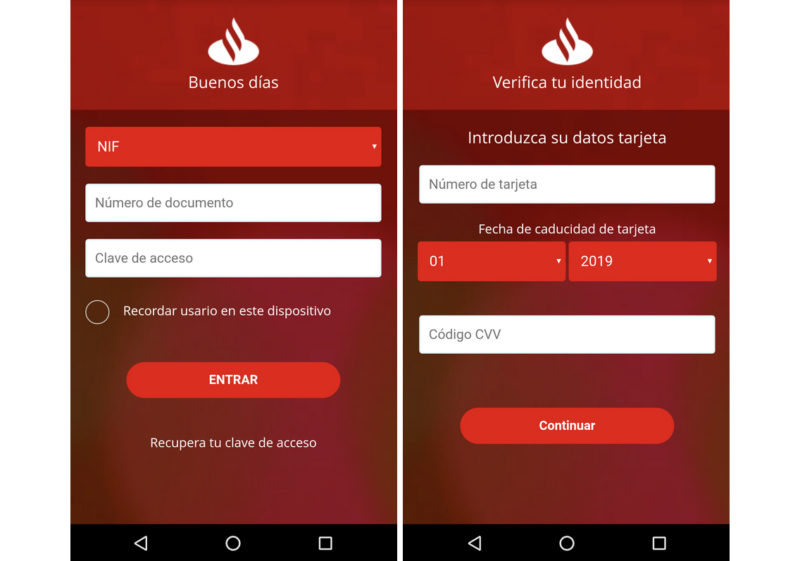 De esta manera, cuándo abrimos nuestras aplicaciones de banca, este malware abrirá un proceso en segundo plano para mostrarnos en su lugar una pequeña máscara, totalmente idéntica, con la que robar nuestras credenciales.