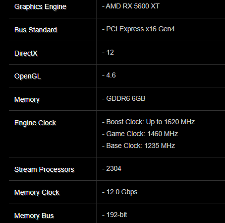 De confirmarse los datos filtrados de ASRock, que proceden de la RX 5600 XT Challenger OC y no del modelo de referencia de AMD, esta gráfica contará con 2.304 shaders (situándose aquí al nivel de la RX 5700 estándar), una velocidad trabajo base de 1.235MHz, una frecuencia para juegos de 1.460MHz, una velocidad en modo turbo de 1.620MHz y un ancho de memoria de 288GB por segundo. Todos esos datos se suman a otros ya conocidos como la utilización de 6GB de memoria GDDR6, una velocidad de memoria de 12Gbps y el bus de memoria de 192-bits.