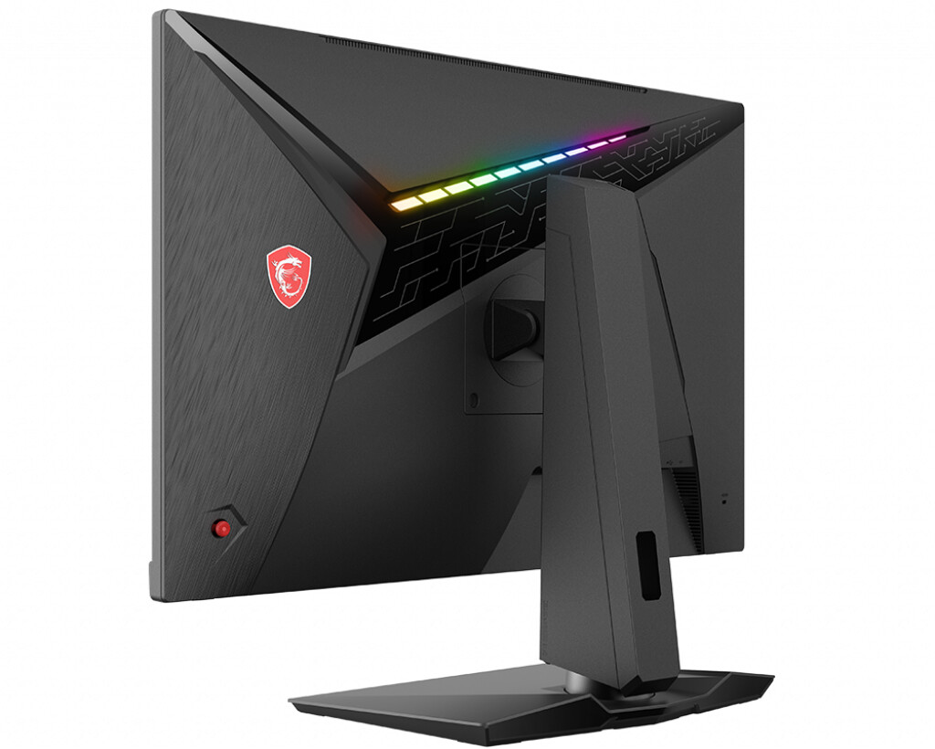 En la parte trasera cuenta a nivel de conexiones con un puerto USB Type-C (que pasa por DisplayPort TMDS), un puerto DisplayPort 1.2a estándar y dos puertos HDMI 2.0b, los cuales están acompañados de adornos de luces LED RGB que se pueden controlar con la aplicación MSI Mystic Light RGB, además de poder ser configurados como luz ambiental. Todos los conectores soportan la resolución 1440p, aunque la tasa de refresco a través de HDMI se establece en 144Hz.