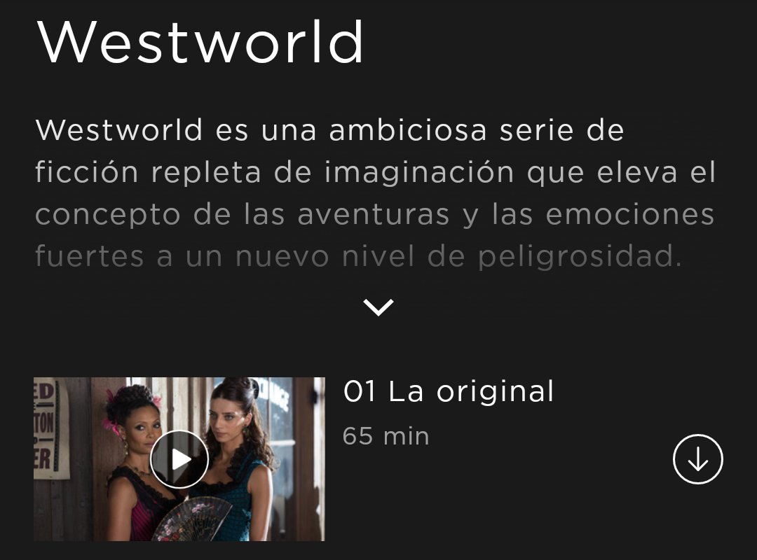 En cuanto a cómo descargar contenidos, tampoco tiene pérdida: nada más entrar en una película o serie, ya podrás ver si es «descargable» o no (hay contenidos licenciados a HBO por tiempo limitado que no lo permiten, pero son los menos); y en la lista de capítulos o abriendo el capítulo o la película, solo tienes que pulsar al correspondiente icono de la fecha.