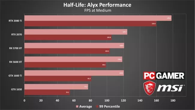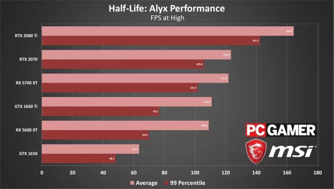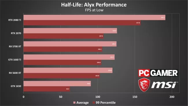 El problema está en la tarjeta gráfica, y es que con una GTX 1060 o una Radeon RX 580 no lograremos una experiencia totalmente óptima. La GTX 1650, que queda por debajo de ambas, puede mover Half-Life: Alyx con buenas tasas de FPS en calidad baja, pero eso es solo una parte de la historia, ya que a pesar de lo que indican los fotogramas por segundo esta tarjeta gráfica genera problemas de latencia elevada en la renderización de FPS, lo que redunda en problemas de stuttering (tartamudeo de la imagen) y tearing (ruptura de la imagen).