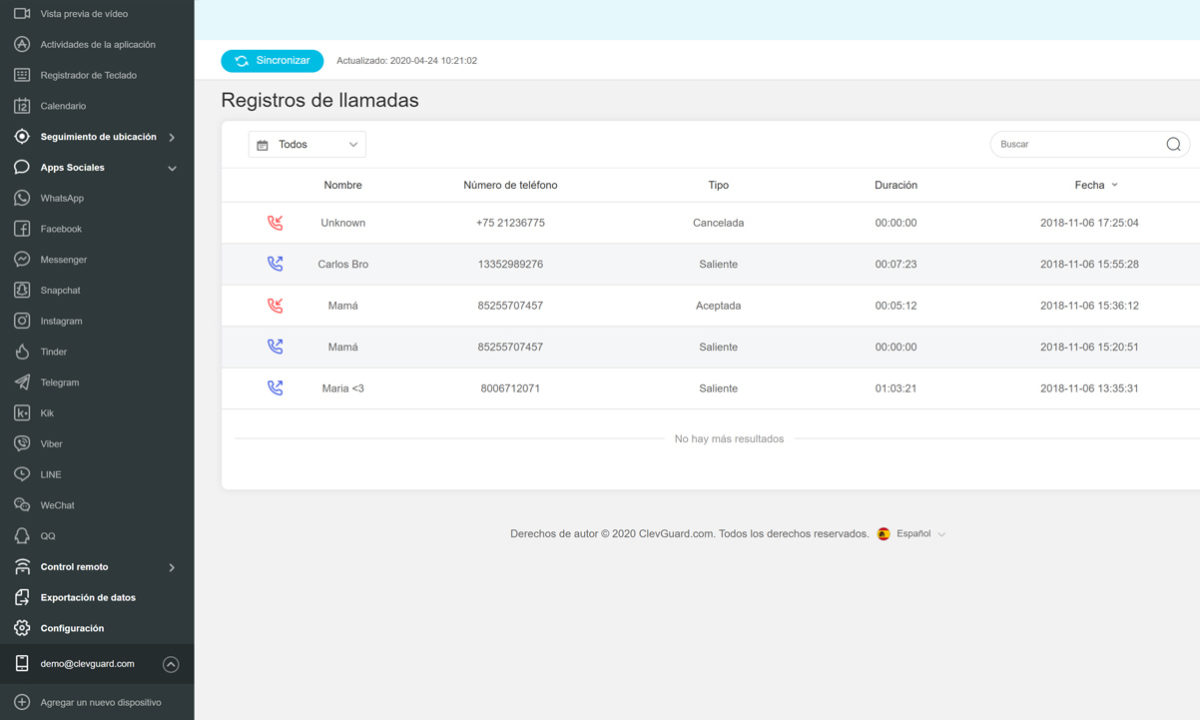 Y es que gracias a KidsGuard Pro, podremos acceder a la información básica del teléfono como el porcentaje de batería, algunos detalles de las funciones principales como el historial de últimas llamadas o los mensajes SMS, el historial de búsquedas y visitas en Internet, la ubicación GPS e incluso la actividad en algunas aplicaciones básicas como la Galería o la cámara.
