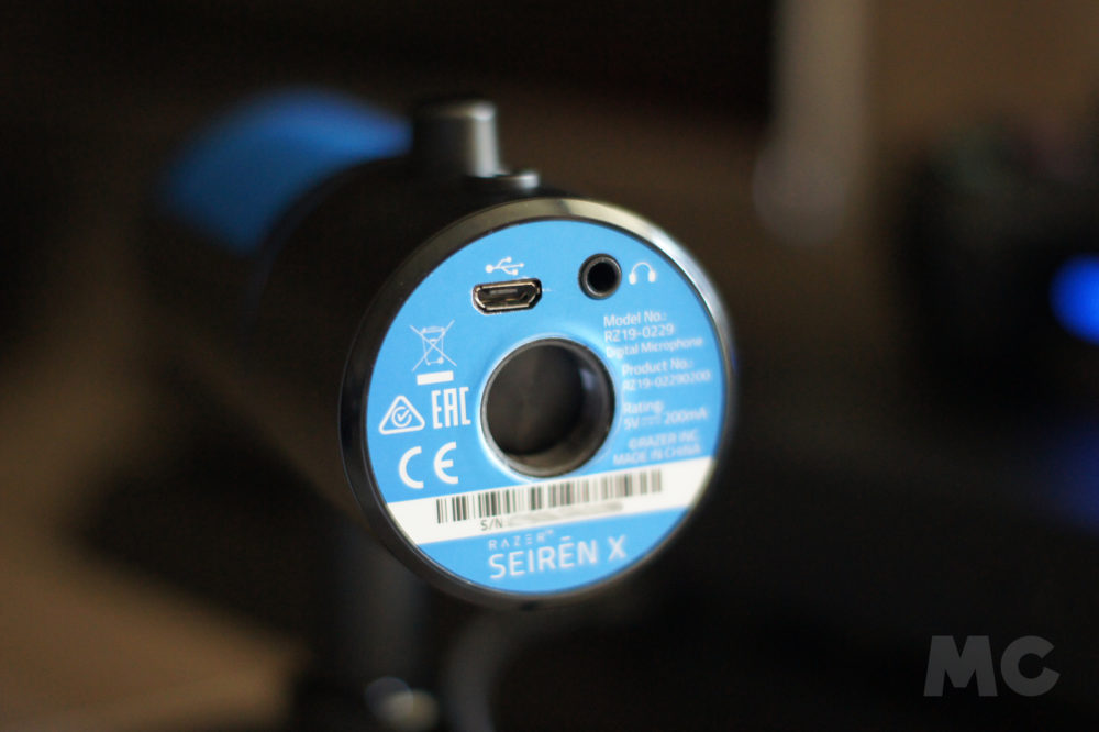 Por último, en la parte inferior del micrófono podremos encontrar una entrada micro-USB para su conexión, así como un notable agujero central. Un buen de Razer que nos incluye un soporte anti-vibraciones junto con una pequeña pieza de extensión, que nos permitirá ganar algo de altura e inclinar el micrófono ligeramente para enfocarlo o retirarlo de los focos de sonido.