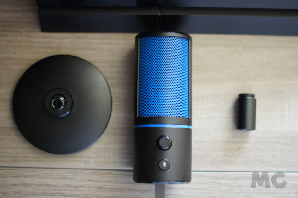 Así pues, al igual que la mayoría de los micrófonos gaming presentes actualmente en el mercado, este modelo se centra alrededor de un condensador electret con un diafragma amplio, cubierto por una pequeña membrana de espuma para evitar la entrada de saliva y suciedad, y una parte exterior cilíndrica de materiales plásticos de gran dureza destinada a la protección del mismo.