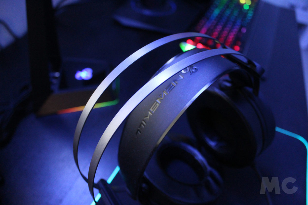 Además, la presencia de una doble diadema basada en una estructura rígida de aluminio (que le aporta una mayor robustez y resistencia) y una pequeña banda elástica sobre la que reposará el almohadillado interior para la cabeza, permite que los Newskill Drakain resulten de lo más ligeros y cómodos a la hora de usarlos. Pero lo más curioso es sin duda este tipo de reposo elástico, que eliminando totalmente la clásica configuración de niveles para el ajuste de nuestra cabeza, permite que el propio peso de los auriculares haga que los mismos se acoplen a la altura idónea de cualquier persona.