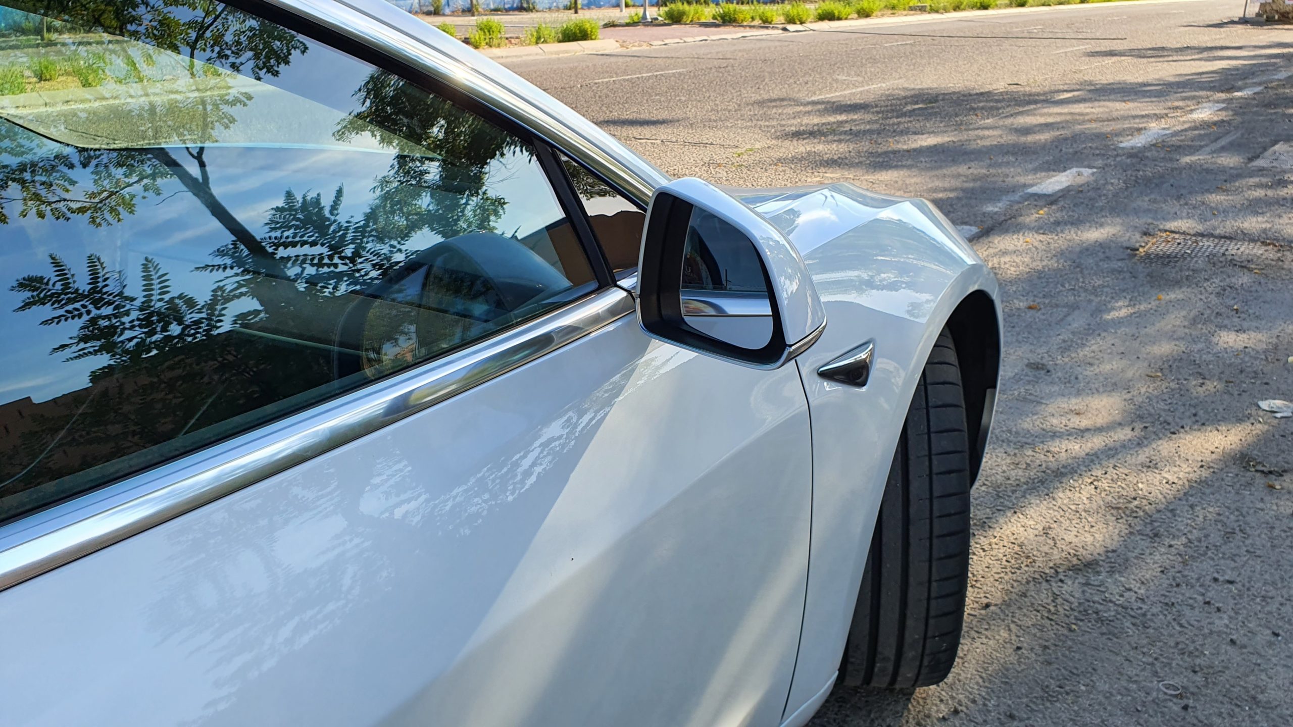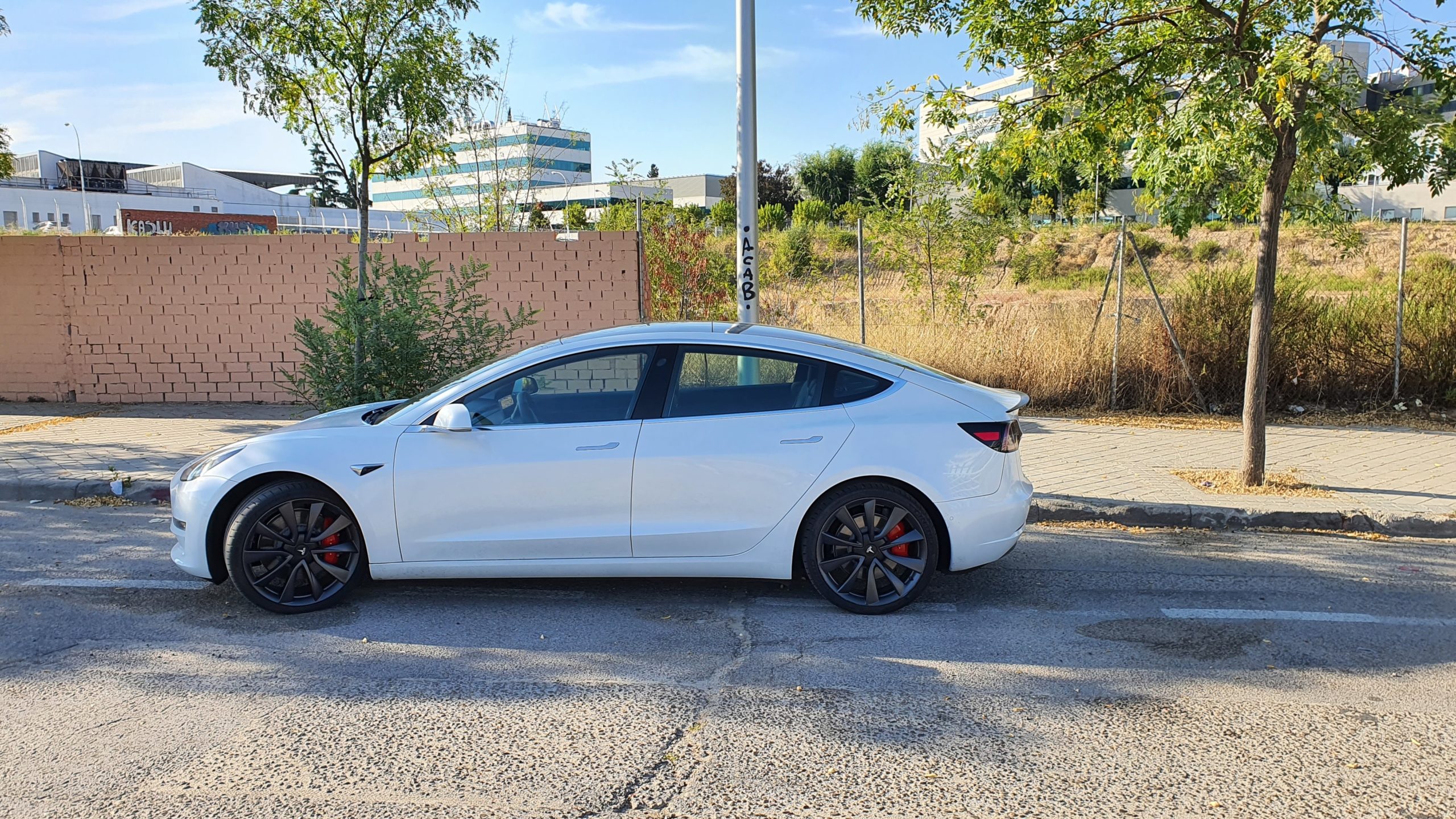 En el lateral con perfil deportivo para el no iniciado en Tesla sorprende la aparente ausencia de tiradores que en sus hermanos aparecen como por arte de magia mediante un sistema motorizado. Sin embargo para el Model 3 tenemos que empujar sobre la parte posterior de la misma para que aparezca la palanca y podamos utilizarla. Al principio parece engorroso pero al final compensa por el aspecto limpio que otorga a la carrocería, más que la supuesta mejora aerodinámica que existe pero que no es demasiado grande.