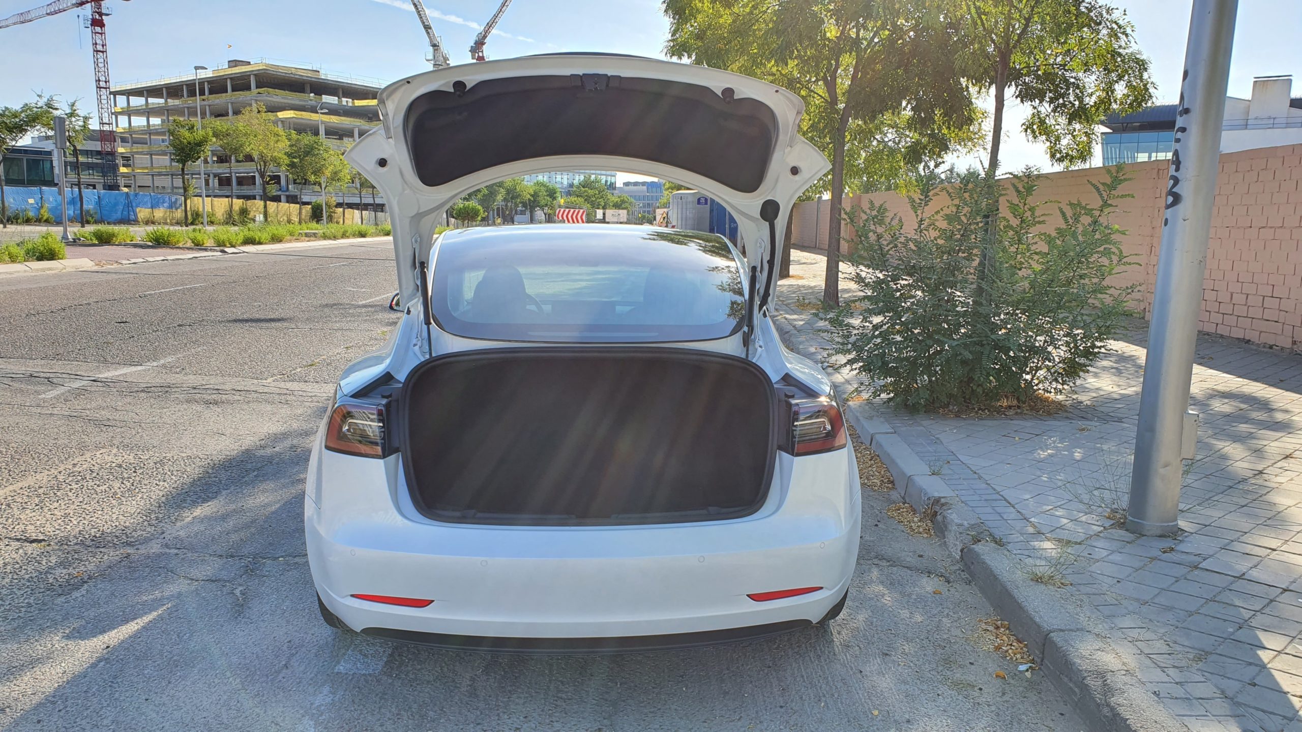 En lo que respecta al maletero el Model 3 va bien servido, aunque no tanto como sus hermanos mayores. Como en los otros dos modelos de Tesla en realidad tenemos dos maleteros. Uno en la parte delantera que ocupa el lugar que ocuparía el motor en un vehículo de explosión y el maletero «tradicional» más grande. En el Model 3 éste tiene una capacidad de 425 litros mientras en la parte delantera puede caber una bolsa de viaje gracias a sus 117 litros.