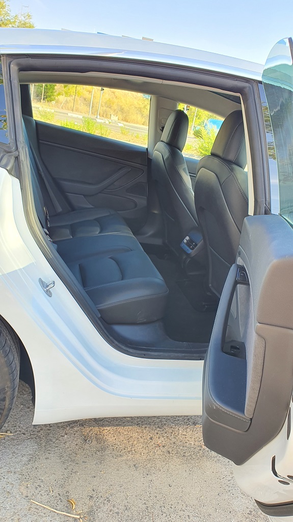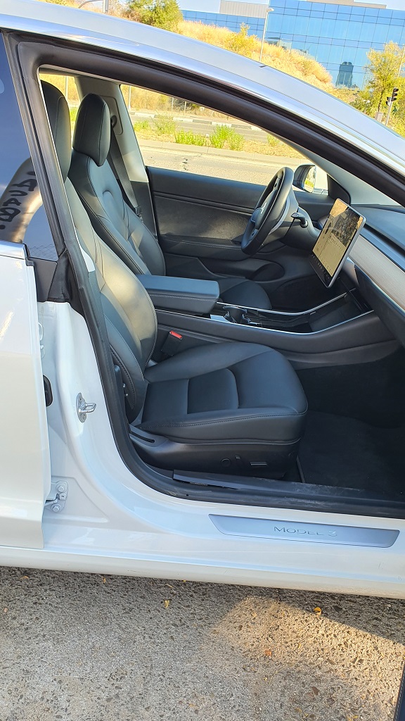 En cuanto a la habitabilidad he de confesar que la primera vez que entré en un Model 3 (cuando se presentó en España hace unos meses) encontré el puesto de conducción y en general el espacio en la parte delantera algo escaso (soy bastante alto) pero una vez regulado el asiento adecuadamente la verdad es que he encajado perfectamente, tanto en distancia al techo como en espacio para las piernas sin problemas para manejar los pedales y sin chocar con el volante con las rodillas.