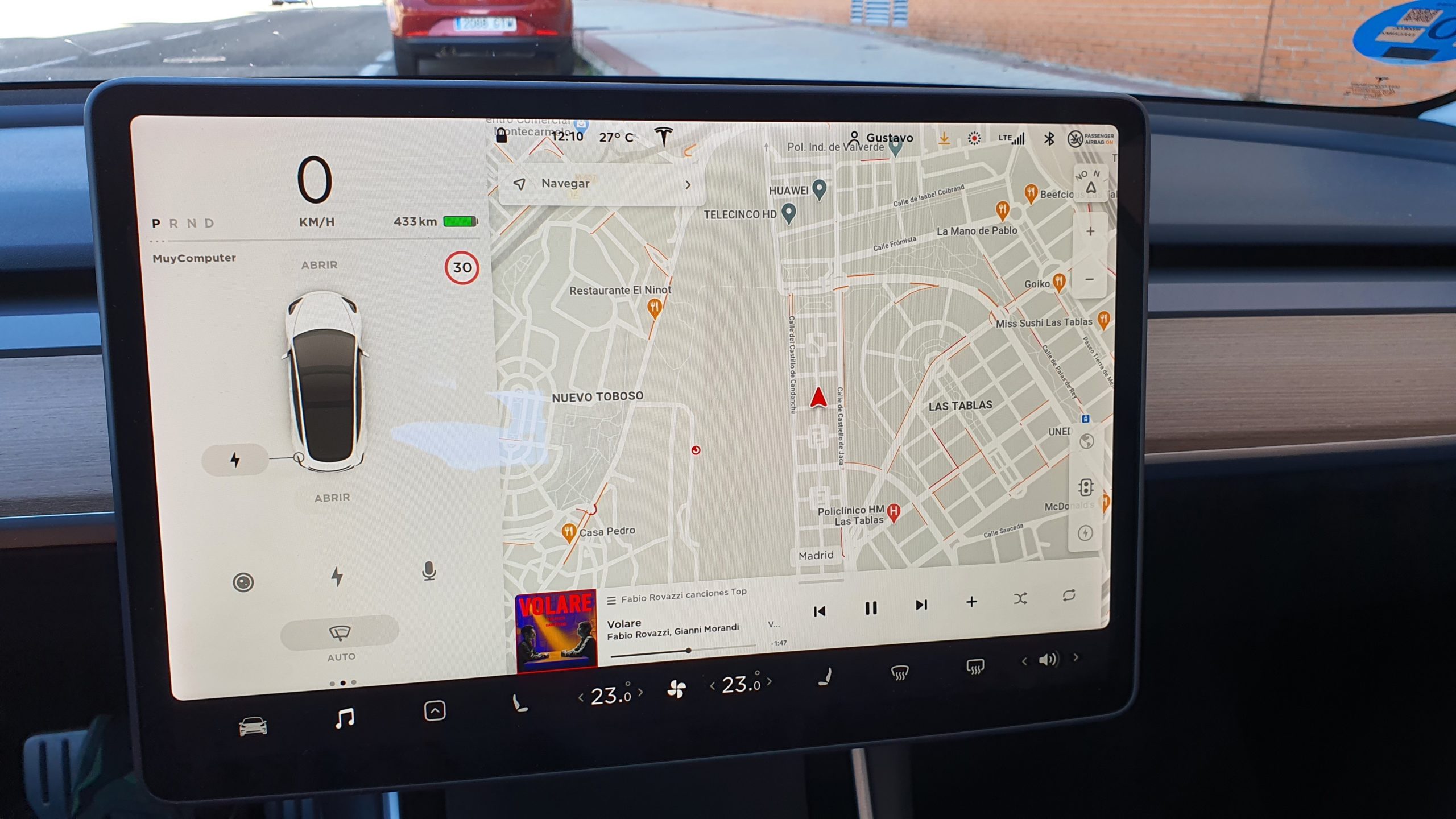 Se trata de una elección arriesgada de Tesla que por un lado trae ventajas como el diseño limpio y sobre todo el abaratamiento de la producción pero por otro lado puede dar algún que otro problema. Tener todo centralizado en una pantalla quiere decir que no todo puede estar a mano. En la misma podemos acceder a ciertas funciones como la de la climatización con un botón directo pero muchas otras funciones requieren que abramos un menú y realicemos una selección lo cual no es demasiado cómodo. Por otro lado el no tener tras el volante la información del coche puede resultar incómodo. O, sinceramente, eso creíamos.