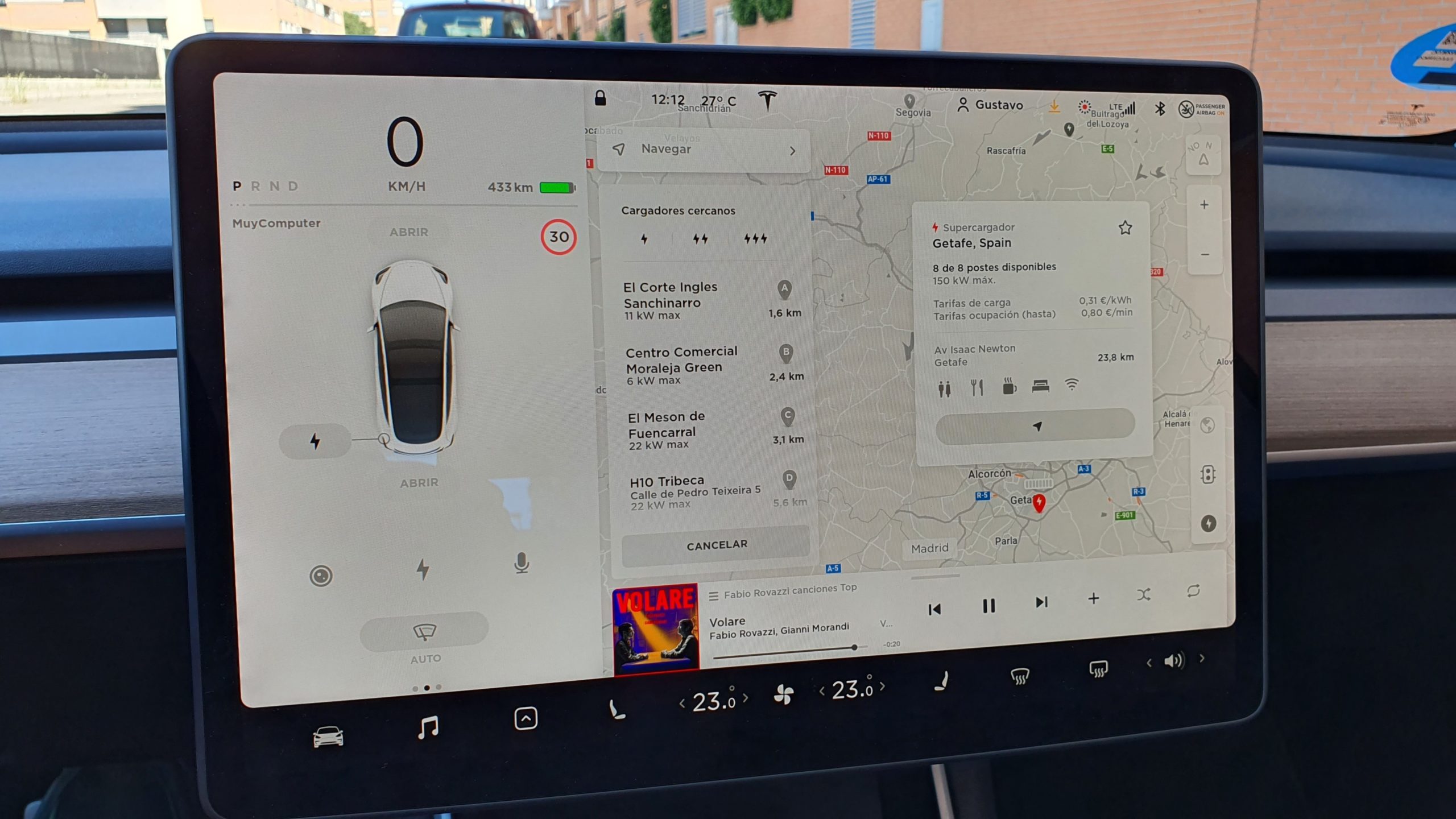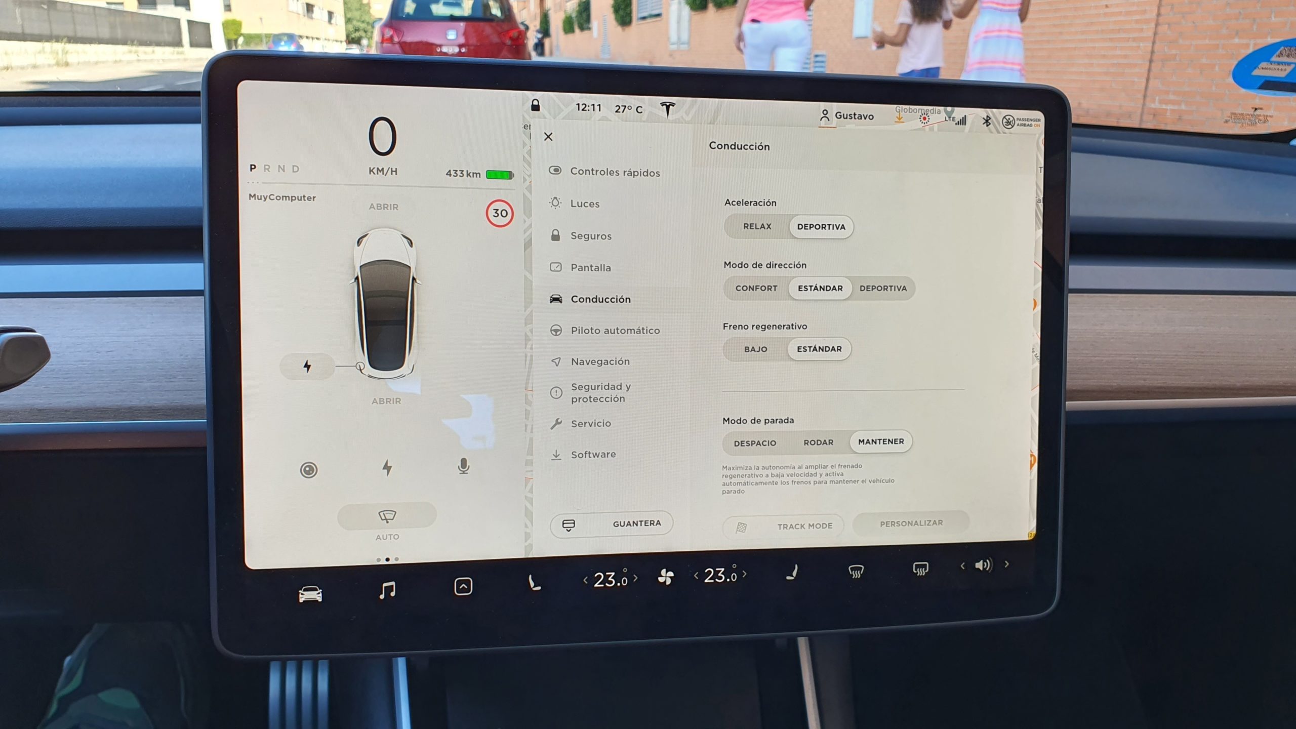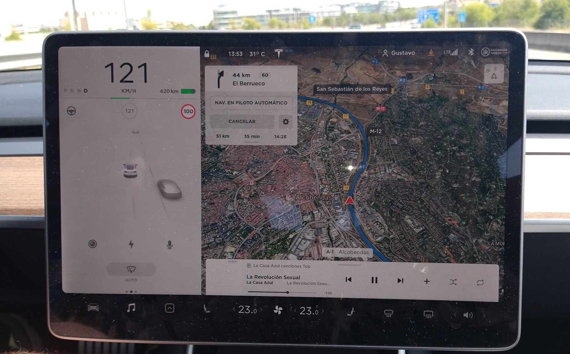 Como ya vimos en los anteriores modelos de Tesla que probamos el mencionado sistema de información y entretenimiento no solamente dispone de una pantalla grande y de mucha calidad sino que permite una cantidad muy grande de funciones y configuraciones. La gráfica es actual y la información muy completa y accesible. El tamaño y la calidad de la pantalla son de gran ayuda en funciones como el mapa de navegación o la imagen del sistema de cámaras que rodea el coche a la hora de maniobrar.