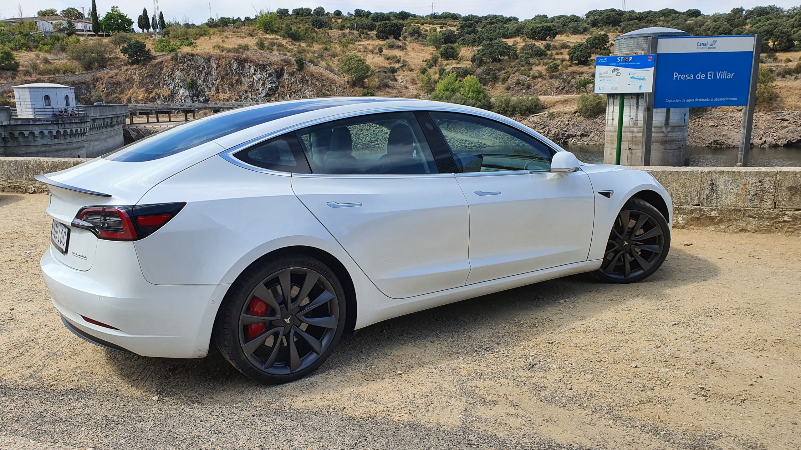 El pequeño de los Tesla que tuvimos entre manos para las pruebas era el más potente que se puede adquirir y también el más equipado. Se trata de un Dual Motor, es decir, tracción integral con un motor por cada eje que proporcionan una potencia conjunta de 480 caballos que consigue llevar al Model 3 de cero a 100 kilómetros por hora en 3,4 segundos. Para ser un «coche del pueblo» es una cifra que pocos deportivos tienen a su alcance. Y la verdad es que leyendo las especificaciones a uno le brota espontánea la sonrisa sabiendo que lo vas a probar, sobre todo recordando la experiencia de aceleración que experimentamos con sus hermanos mayores.