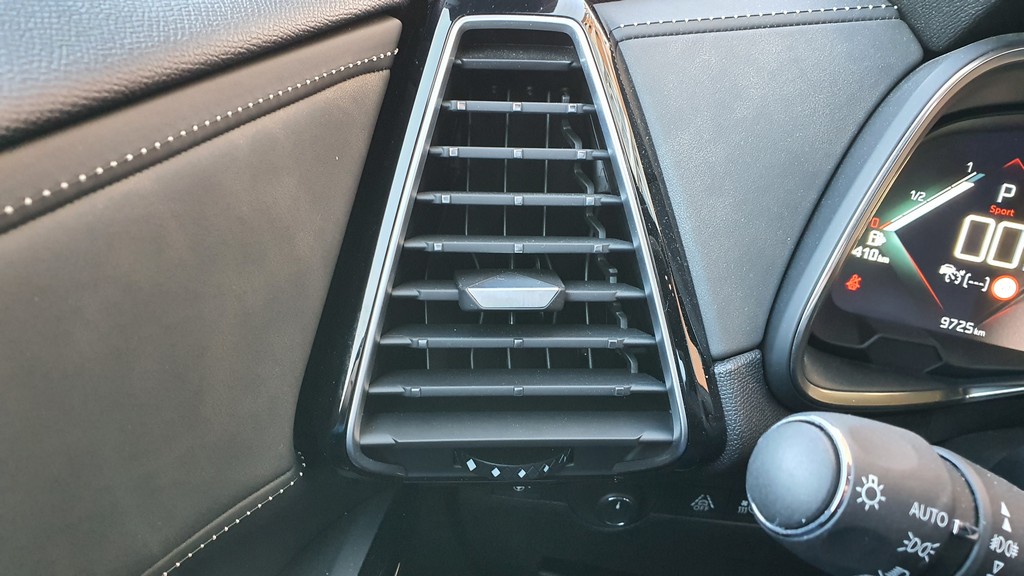 La gráfica del sistema de información también está salpicada por motivos en forma de triángulos y rombos como con la información de la temperatura a la que hemos configurado el climatizador. Tras el volante disponemos también de una pantalla de visualización de 12 pulgadas de buena legibilidad y con una gráfica espectacular que también mantiene los motivos en forma de rombo por ejemplo para encuadrar la información de la velocidad instantánea.