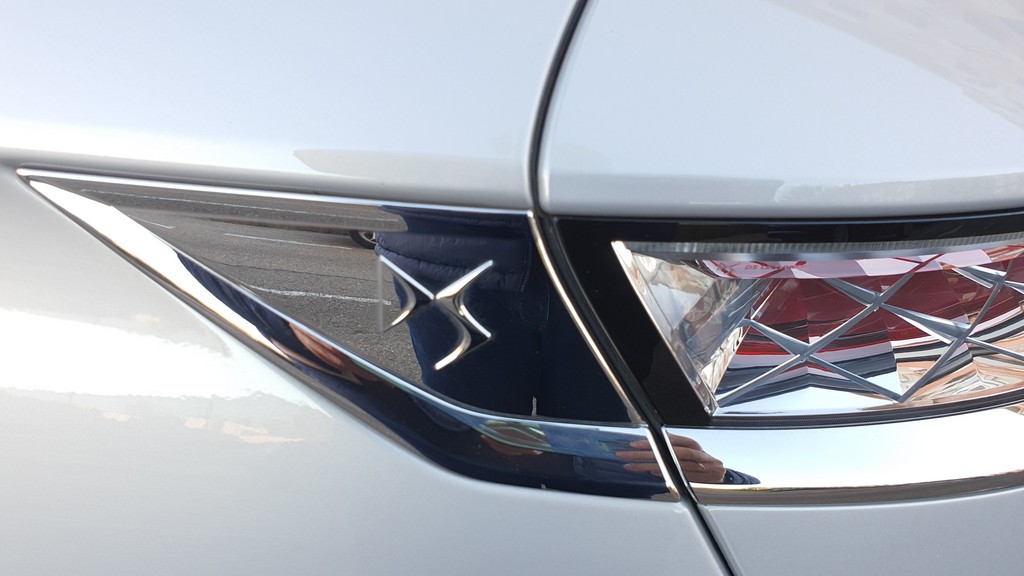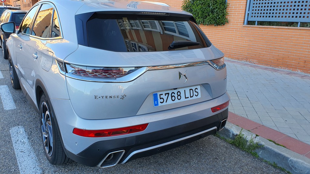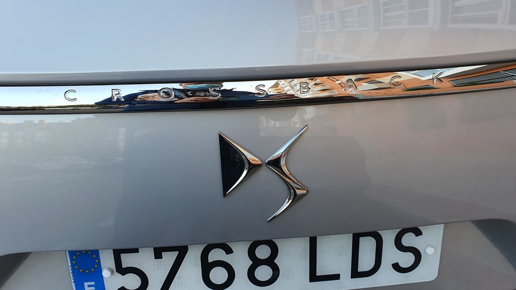 Atrás los grupos ópticos enmarcados con una línea metálica cromada que se une en el centro del portón con el logo DS justo debajo se encuentran muy elevados. Debajo del portón el parachoques y dos tubos de escape de generoso tamaño que le dan un toque agresivo. Los grupos ópticos se encuentran en el portón mientras que hay unas luces adicionales en el paragolpes. Si nos acercamos a los faros posteriores veremos un entramado en forma de robos muy curioso.