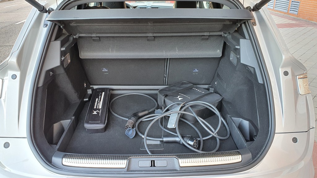 El respaldo de las plazas traseras puede inclinarse gradualmente. En lo que respecta al maletero como es de esperar el DS 7 tiene mucho espacio, lo que es menos habitual en los híbridos enchufables es que en este caso los 555 litros son los mismos que los que ofrece el DS 7 solamente con motor atmosférico. Dispone de una tapa para el fondo del maletero que puede colocarse a dos alturas.