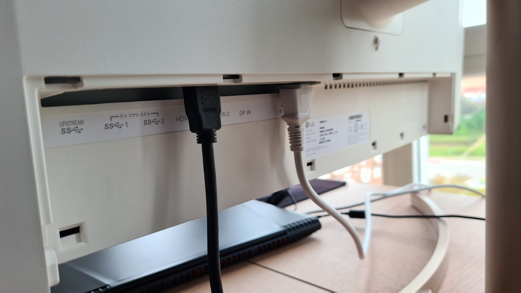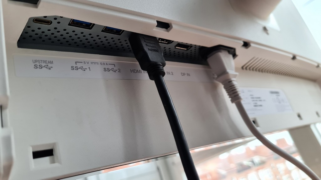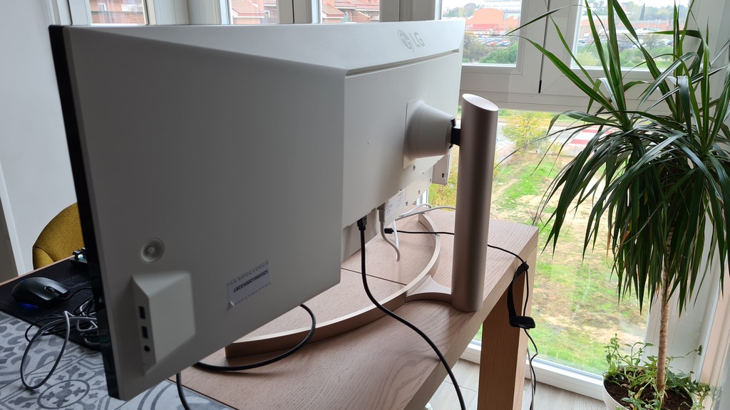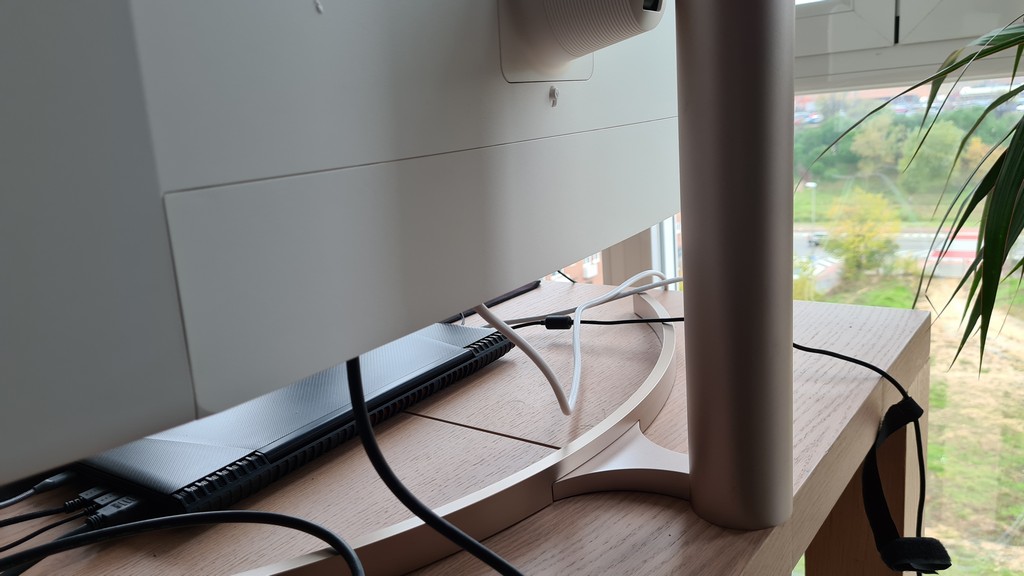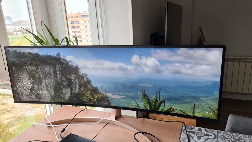 Hay que tener en cuenta que la resolución máxima que permite la conexión HDMI es de 5120×1080. Para alcanzar los 5120×1440 puntos tendremos que utilizar la conexión Display Port o USB-C. Aquí también una advertencia ya que no todos los cables USB-C funcionan con el suficiente ancho de banda. Por suerte con el monitor viene incluido un elegante cable USB-C en color blanco como el monitor que es perfectamente capaz. Nosotros hemos utilizado el cable USB-C con un portátil que disponía de esa conexión y hemos podido utilizar el monitor a la máxima resolución además de aprovecharlo como hub USB conectando el móvil, webcam, teclado y ratón.