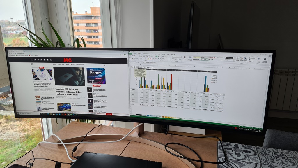 Como hemos dicho un monitor de las características del LG49WL95 no es para todos los públicos. Una superficie de visualización tan amplia solamente la aprovechará quien trabaje con mucha información a la vez, aunque es cierto que poco a poco muchos trabajadores acaban teniendo estas características, sobre todo en épocas como estas en las que la de la videoconferencia se convierte en una ventana habitual más y tenemos que tener a disposición mucha información.