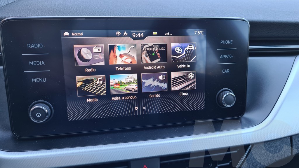 En cuanto a la calidad del interior seguimos percibiendo una buena elección de materiales a la vista y buenos ensamblajes de las piezas. Los asientos delanteros nos han parecido cómodos y suficientemente envolventes en las curvas gracias a los soportes lumbares. Al igual que sucedía con la parte trasera, para la zona del salpicadero también se han utilizado las piezas del Scala. La pantalla del sistema multimedia y de información tiene una buena colocación aunque no tan elevada como nos gustaría.