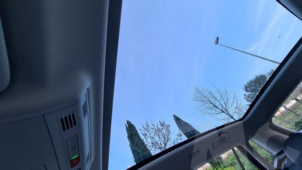 Otra de las sorpresas más agradables es el techo solar (fijo) que ocupa buena parte del techo y que puede ocultarse con una tapa de tela. Proporciona muchísima luz y una gran sensación de espacio, aunque éste como hemos visto es bastante abundante de todas formas y la iluminación ya es buena con las superficies acristaladas de gran tamaño en los laterales. Es un detalle interesante que por ejemplo en invierno ayuda a calentar el habitáculo si el día es soleado. El cristal está oscurecido por lo que, por otro lado, no tendremos problemas de deslumbramientos.