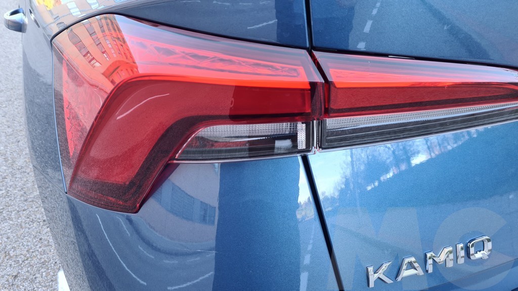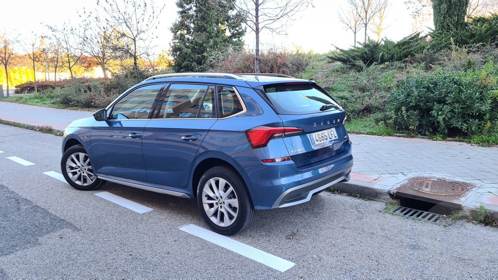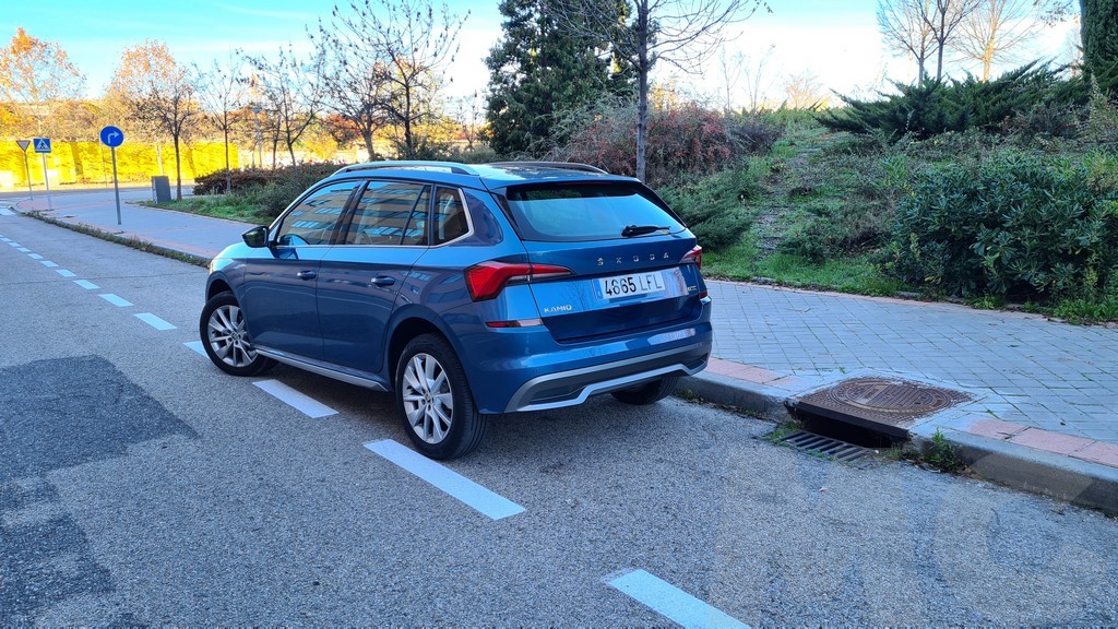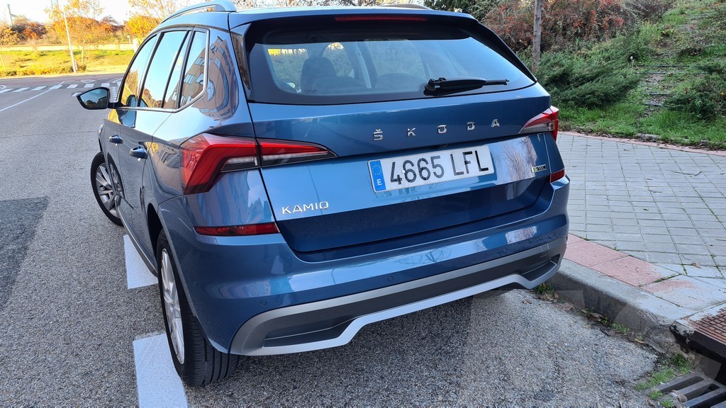 En la parte trasera Skoda ha optado por una solución curiosa ya que salvo por el tamaño de algunos de los elementos el aspecto es idéntico al del Scala («estilo Volvo») con dos grupos ópticos partidos entre la carrocería y el portón y el reflectante que en el caso del Kamiq se encuentra más arriba que en el Scala. También en la parte trasera, y es otro elemento que no encontramos en el turismo, se ha colocado un embellecedor en color gris que funciona como defensa y que envuelve la zona de los tubos de escape.