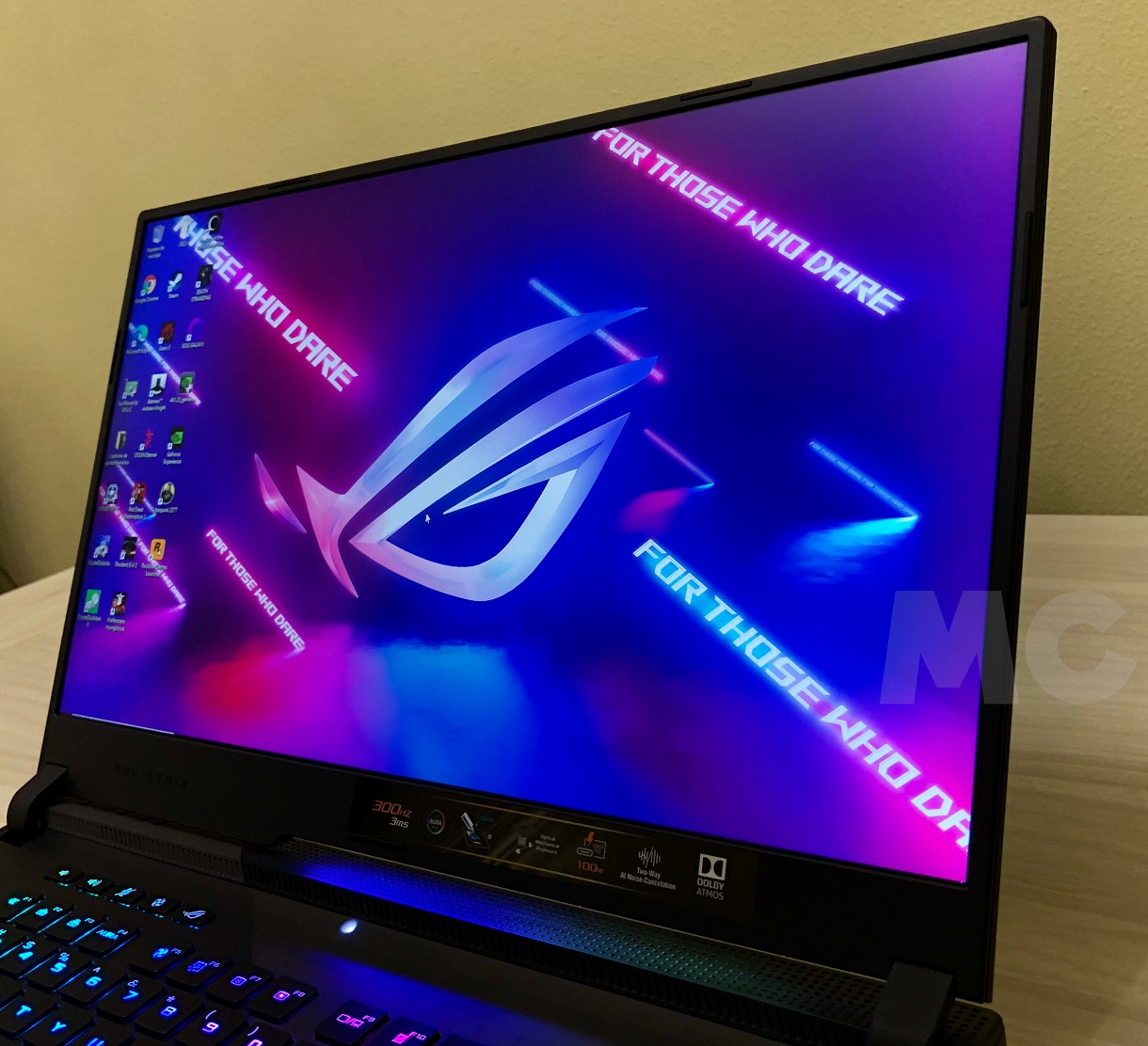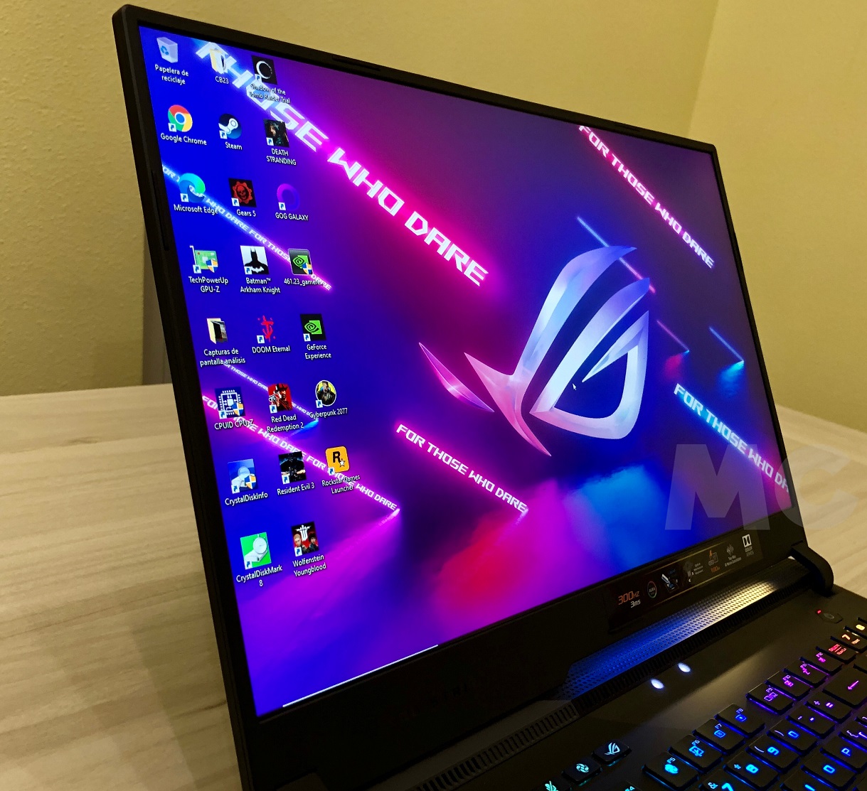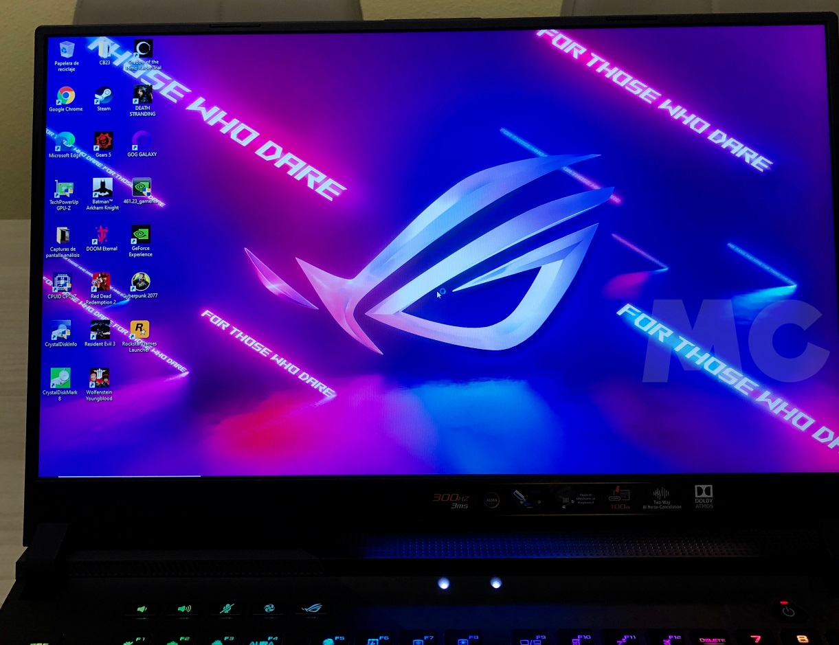 Una vez completado el clásico proceso de configuración de Windows 10, que no nos llevará más de unos minutos, estamos listos para empezar a usar el ASUS ROG Strix SCAR 17. Las sensaciones que transmite el teclado óptico-mecánico son realmente buenas, tanto que da la impresión de estar disfrutando de una experiencia verdaderamente única, tanto al escribir como al jugar. No tiene nada que ver con un teclado estándar, y desde luego marca una diferencia importante.