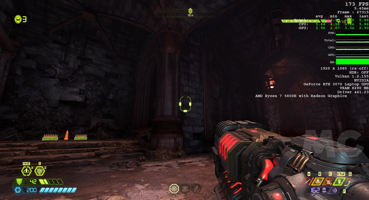 Como podemos ver en las gráficas adjuntas, el rendimiento es fantástico. El ASUS ROG Strix SCAR 17 es capaz de mover juegos exigentes en configuración máxima con una fluidez total, y gracias a su potente RTX 3070 Mobile no tiene problemas para mover Wolfenstein: Youngblood y Cyberpunk 2077 configurados al máximo, con trazado de rayos y DLSS 2.0 en modo calidad. En Shadow of the Tomb Raider no podíamos activar el DLSS en 1080p, pero a pesar de todo, la RTX 3070 Mobile pudo moverlo con medias de 63 FPS en calidad máxima y con trazado de rayos en ultra. En la galería inferior, podéis encontrar capturas de algunos de los juegos probados. Podéis ampliarlas haciendo clic en ellas.