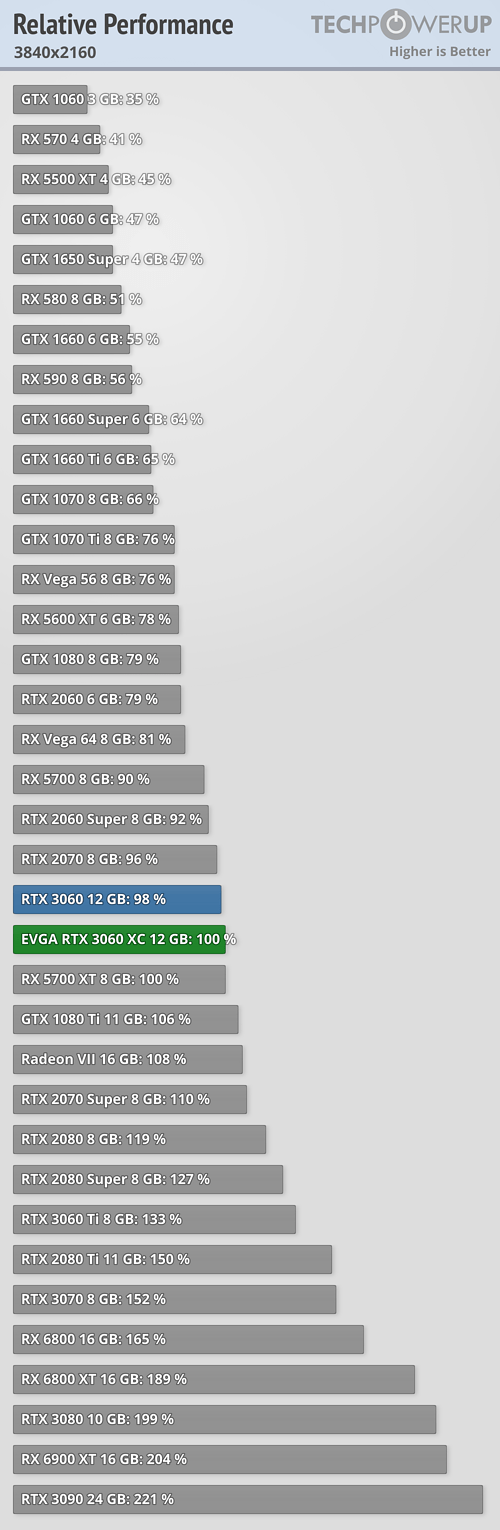 La GeForce RTX 3060 posiciona en una franja muy importante, y por 335 euros, su precio de venta recomendado, ofrece un valor muy bueno ya que, como dije anteriormente, es capaz de superar a la RTX 2070, suyo precio de salida fue de 629 euros. Sin embargo, no representa un salto generacional tan marcado como el que vimos, en su momento, con la GTX 1060 de 6 GB y la RTX 2060. La primera logró estar al nivel de una GTX 980, y la segunda superó a la GTX 1070 Ti.