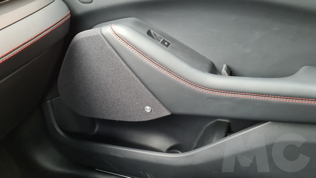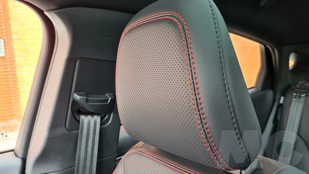 El interior es muy amplio y la la sensación de estar muy bien acabado. No parece que se hayan obsesionado en trufarlo de materiales de lujo ni de elementos demasiado refinados pero sí de detalles deportivos como las costuras en color rojos que encontramos en los asientos, el volante y algunas partes del salpicadero. En la parte superior del salpicadero se ha optado por un recubrimiento de tela de buen tacto que tiene aspecto de resistente y de fácil mantenimiento.