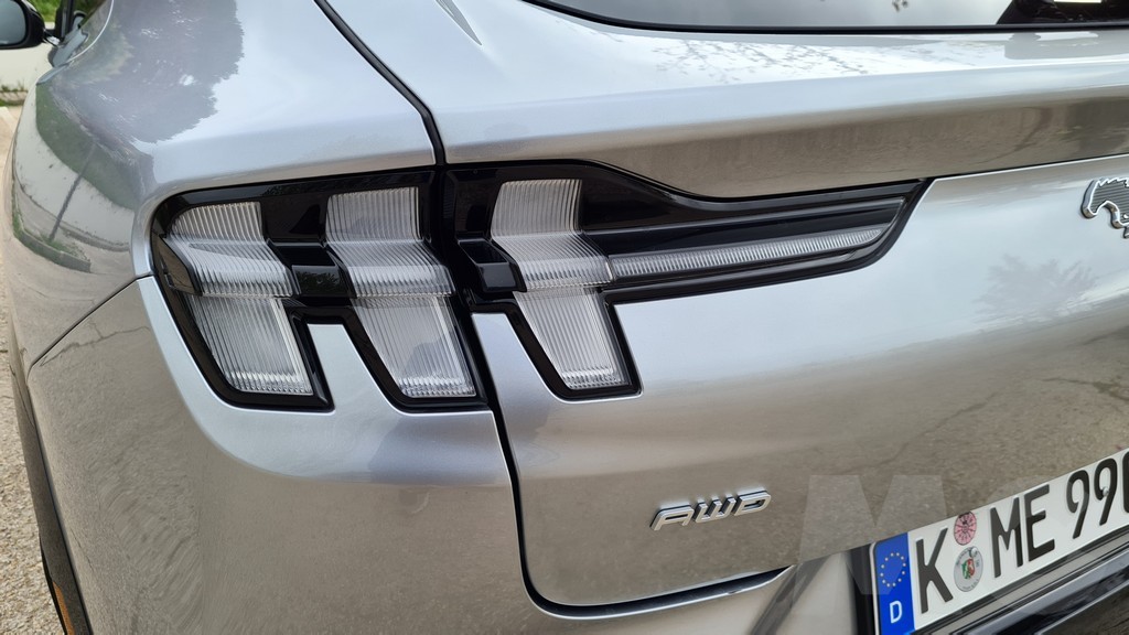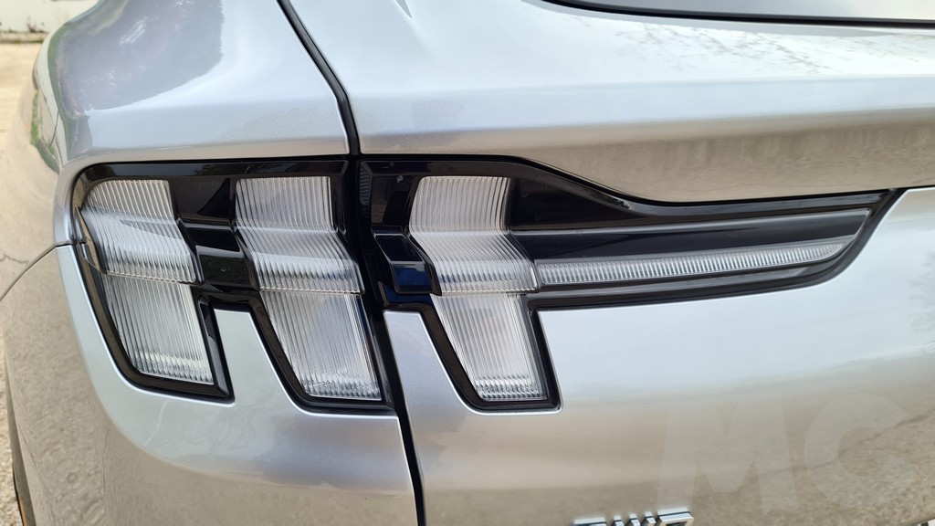 El primer vistazo al Match-E sin duda cautiva, en primer lugar por el logo del caballo en la calandra delantera (obviamente sin toma de aire) pero también por las líneas que aunque pertenecen a un SUV no ocultan en ningún momento su inspiración deportiva. Líneas musculosas en todo el lateral, un spoiler temprano en la parte superior del portón trasero y unas luces traseras agrupadas en dos grupos de tres con la firma inconfundible del deportivo americano.