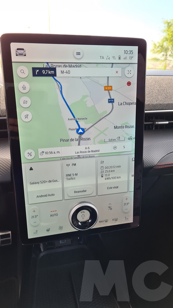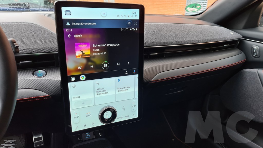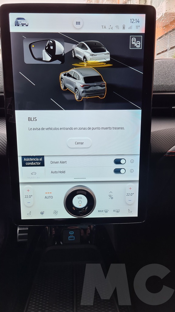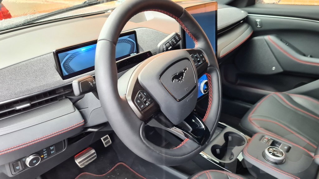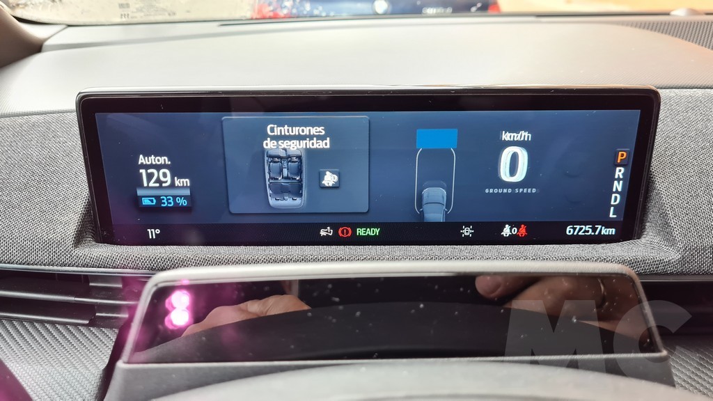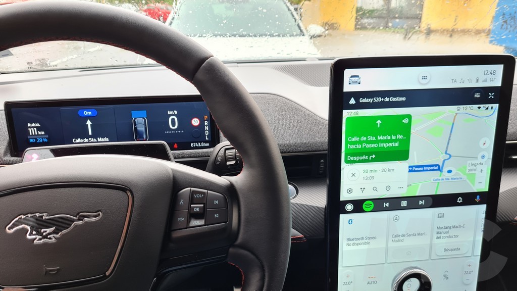 Además a diferencia del Model 3 y el Model Y Ford sí que proporciona una pequeña pantalla de información detrás del volante que sobresale del salpicadero. Esta pantalla no tiene un tamaño grande pero sí ofrece toda la información necesaria sobre velocidad, autonomía, instrucciones de navegación… de forma clara y altamente visible, uno de los aciertos de Ford en este coche sin ninguna duda y una de las muchas enmiendas a la propuesta de Tesla que podemos encontrar en este coche. Un detalle es que la pantalla funciona también con Android Auto por lo que en ella podremos visualizar las instrucciones de Google Maps si preferimos usarlo como asistente de navegación.