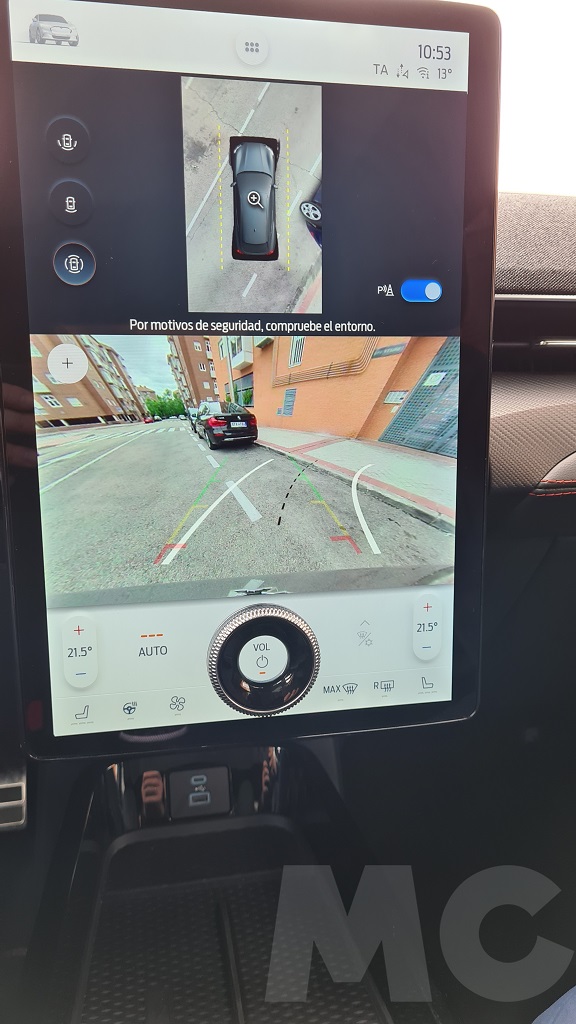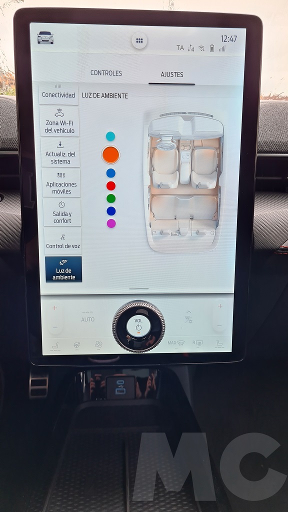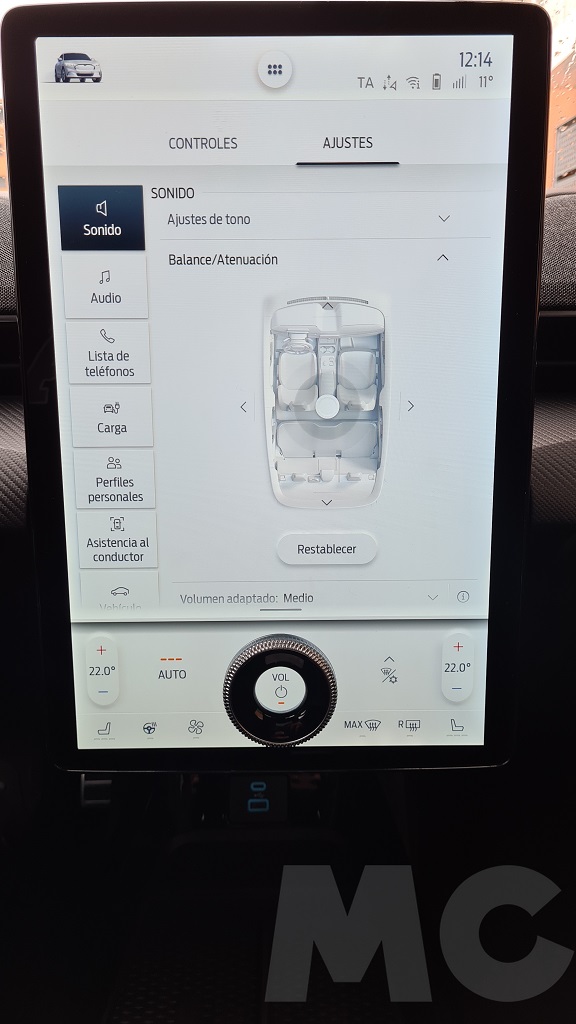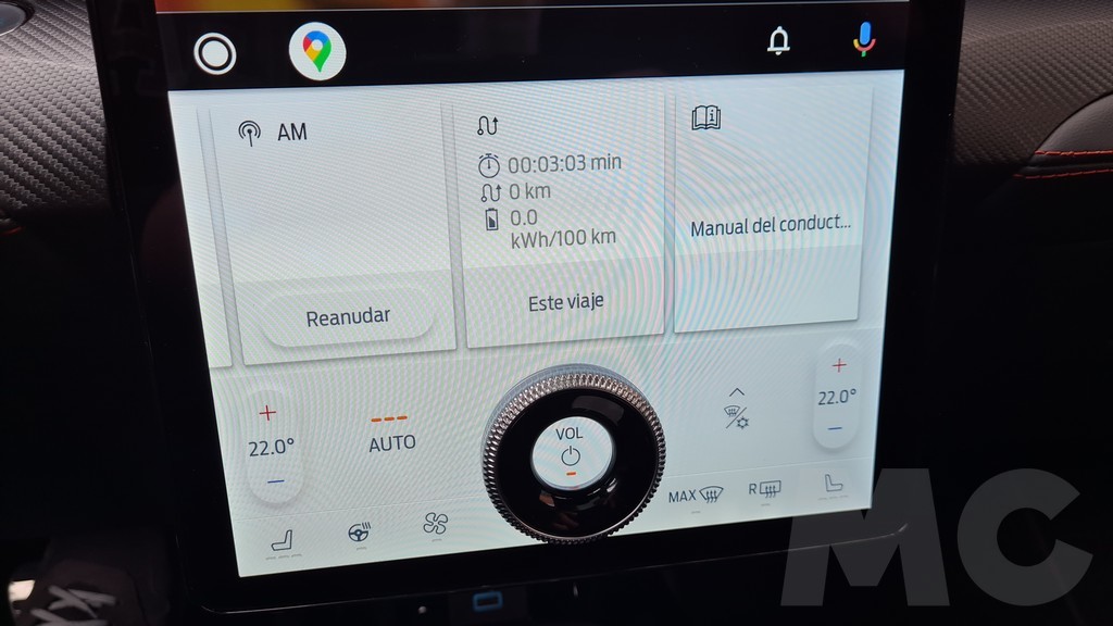 Llega el momento de hablar del elefante en la habitación o más bien el enorme selector circular empotrado en la gigantesca pantalla de 15,5 pulgadas que nos permite subir y bajar el volumen… Es cierto que proporcionar algunos botones y selectores para no depender al cien por cien de la pantalla táctil nos parece un acierto pero… ¿por qué insertar ese selector en la pantalla? Es algo que nos ha sorprendido y aunque funcionalmente nos convence estéticamente no lo compartimos.