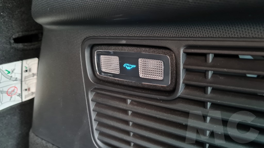 Algunos detalles curiosos aumentan la carga de personalidad del coche como el que podamos encontrar el logo de Mustang en lugares escondidos como debajo de la alfombrilla del soporte para el teléfono móvil, entre los botones que activan las luces del maletero y en algunos rincones más que no tuvimos tiempo de recorrer. Un detalle que queremos resaltar es el excelente funcionamiento del equipo de música que está a cargo nada menos que de la empresa danesa Bang&Olufsen.