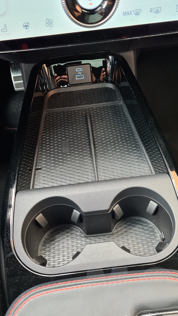 Pero aunque la inspiración es deportiva no faltan detalles prácticos como numerosos huecos portaobjetos, entre ellos un espacio de gran tamaño para el móvil (en nuestro caso con carga inalámbrica) que no entendemos cómo no es una prioridad para cualquier fabricante siendo éste un compañero ya inseparable de cualquier conductor. Justo debajo de la consola central hay otro gran hueco muy práctico para cualquier objeto que queramos que quede oculto.